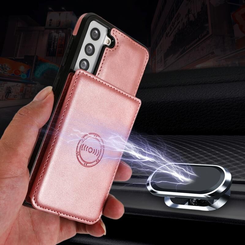 Για Samsung Galaxy S21 + 5G μοσχάρι υφή μαγνητική κάρτα τσάντα PU υπόθεση τηλεφώνου (Ροζ χρυσός)