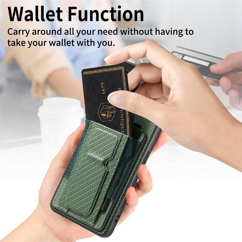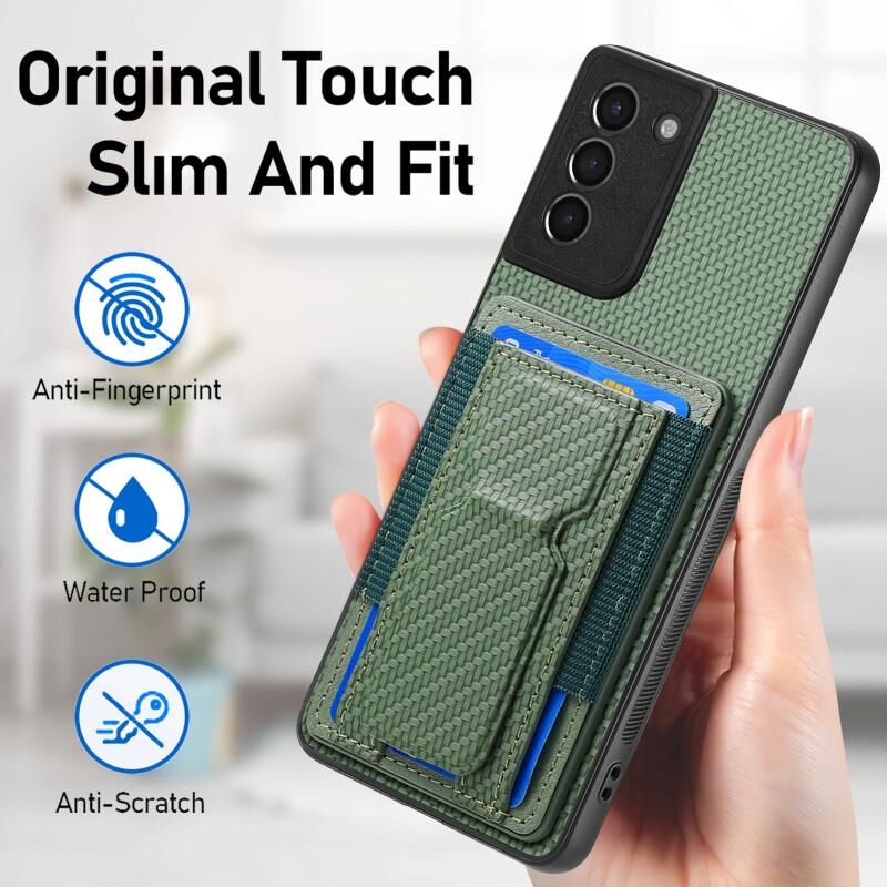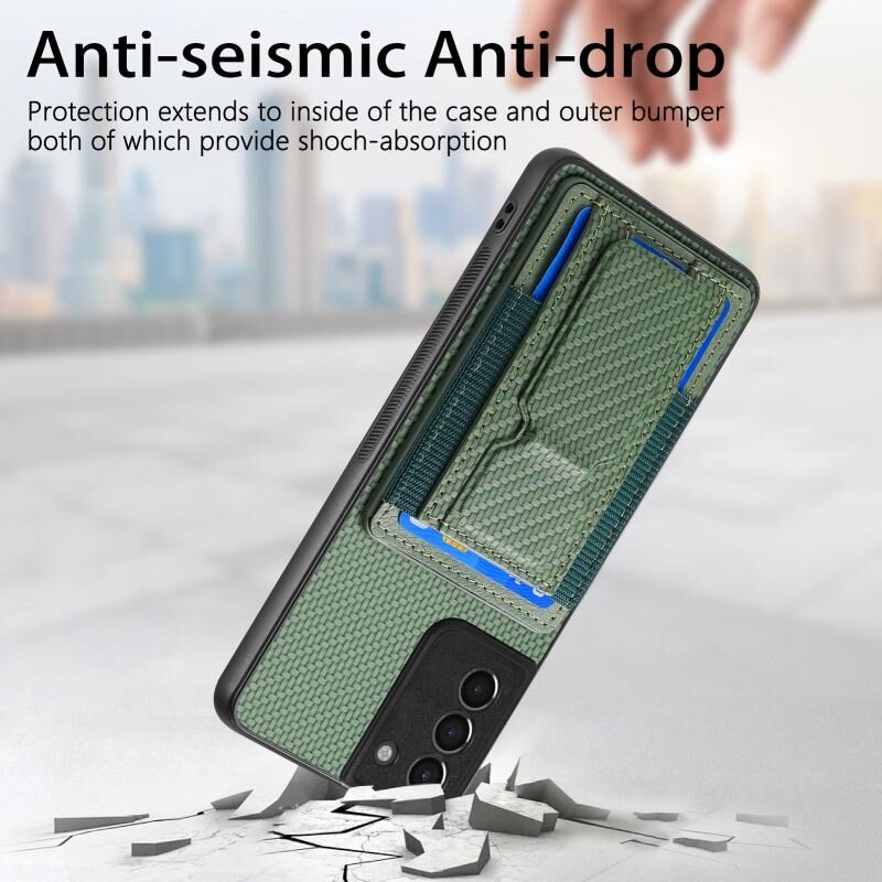 Για Samsung Galaxy S21 + 5G ινών άνθρακα 5G Πτυσσόμενα Stand ελαστική κάρτα τσάντα υπόθεση τηλεφώνου (πράσινο)