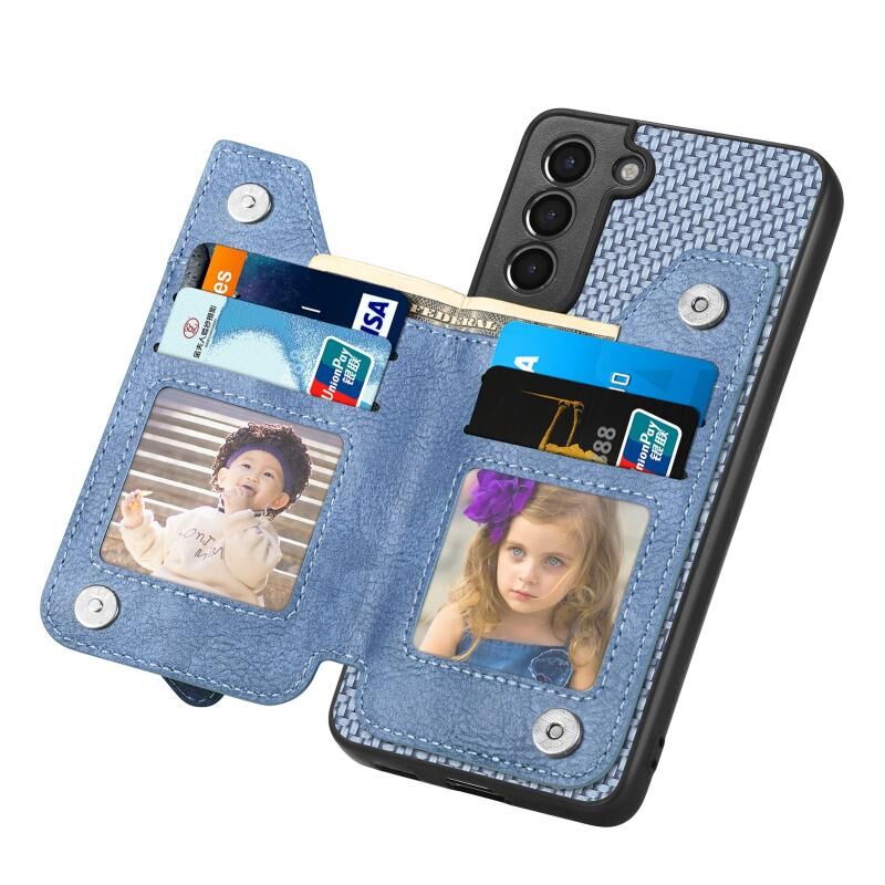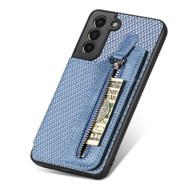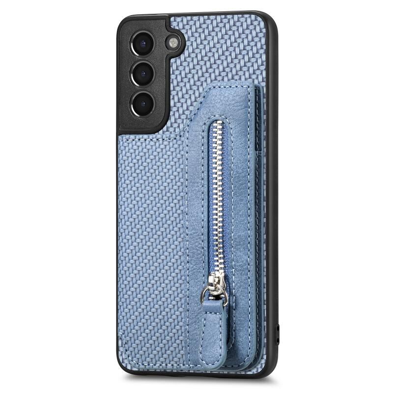 Για Samsung Galaxy S21 5G ινών άνθρακα οριζόντια Flip φερμουάρ πορτοφόλι τηλέφωνο υπόθεση (μπλε)