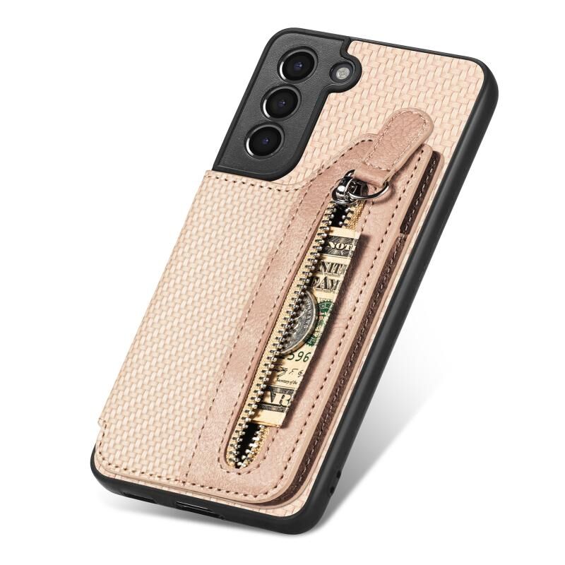 Για Samsung Galaxy S21 5G ινών άνθρακα οριζόντια Flip φερμουάρ πορτοφόλι τηλέφωνο υπόθεση (χακί)