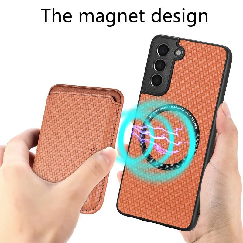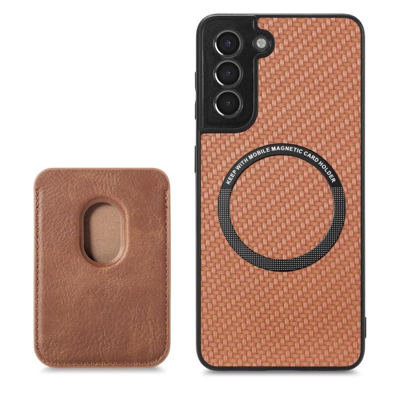 Θήκη τηλεφώνου Samsung Galaxy S21 5G από ανθρακονήματα και δέρμα με κάρτες και μαγνητική σύνδεση MagSafe (Καφέ)