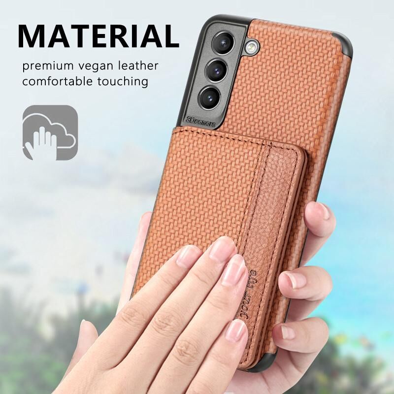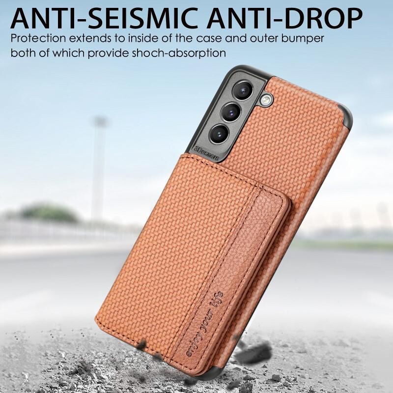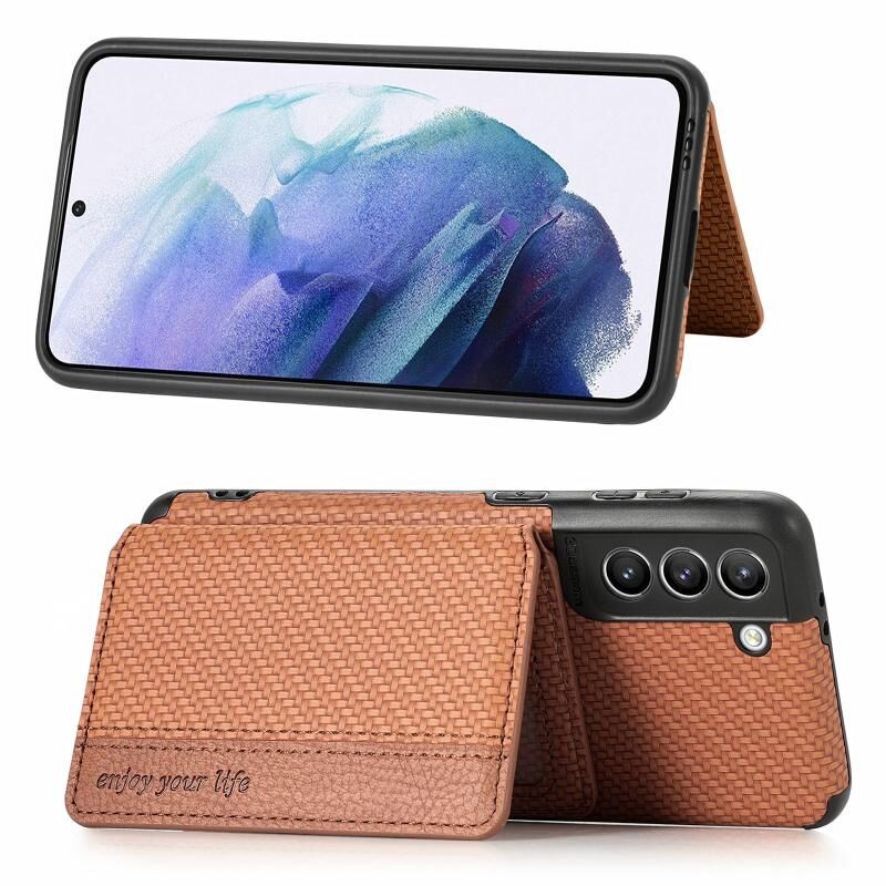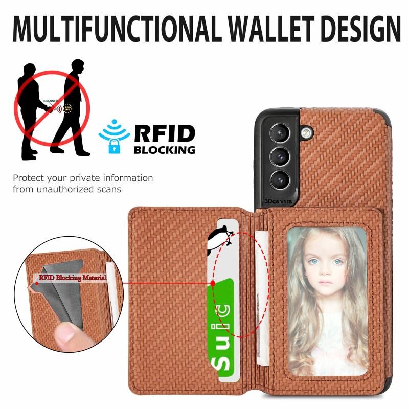 Για Samsung Galaxy S21 5G ίνες άνθρακα ινών μαγνητική κάρτα τσάντα TPU + PU Shockproof πίσω κάλυμμα υπόθεση με θήκη & υποδοχή κάρτας & πλαίσιο φωτογραφιών (καφέ)
