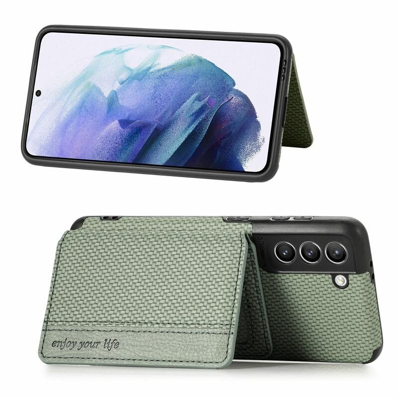 Για Samsung Galaxy S21 5G ίνες άνθρακα ινών μαγνητική κάρτα τσάντα TPU + PU Shockproof πίσω κάλυμμα υπόθεση με θήκη & υποδοχή κάρτας & πλαίσιο φωτογραφιών (πράσινο)