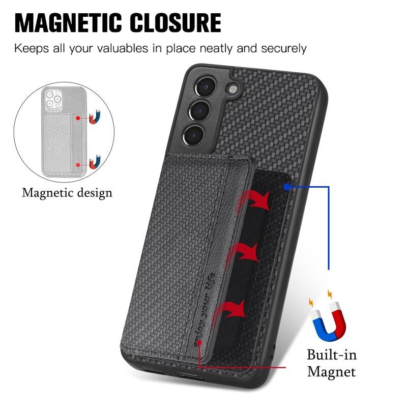 Για Samsung Galaxy S21 + 5G ινών άνθρακα μαγνητική κάρτα πορτοφόλι τσάντα θήκη τηλεφώνου (μαύρο)