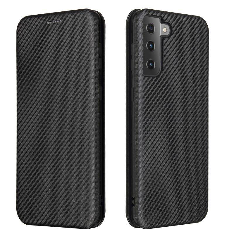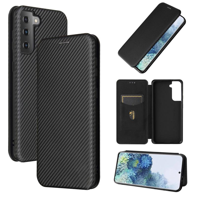 For Samsung Galaxy S21+ 5G Carbon Fiber Texture Horizontal Flip TPU + PC + PU Leather Case with Card Slot(Black)
