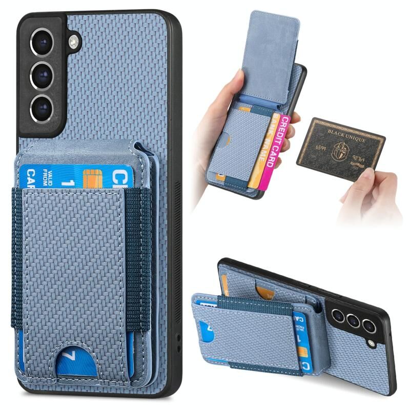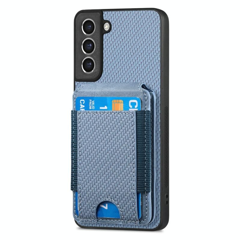 Για Samsung Galaxy S21 5G Carbon Fiber Κάθετη Flip Wallet Stand υπόθεση τηλεφώνου (μπλε)