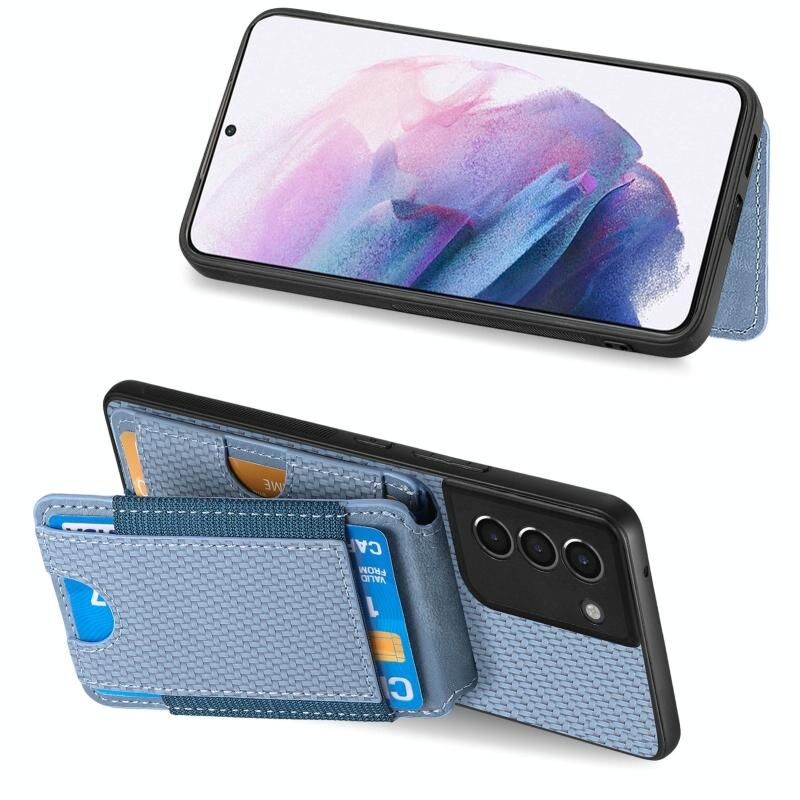 Για Samsung Galaxy S21 + 5G Carbon Fiber Κάθετη Flip Wallet Stand υπόθεση τηλεφώνου (μπλε)