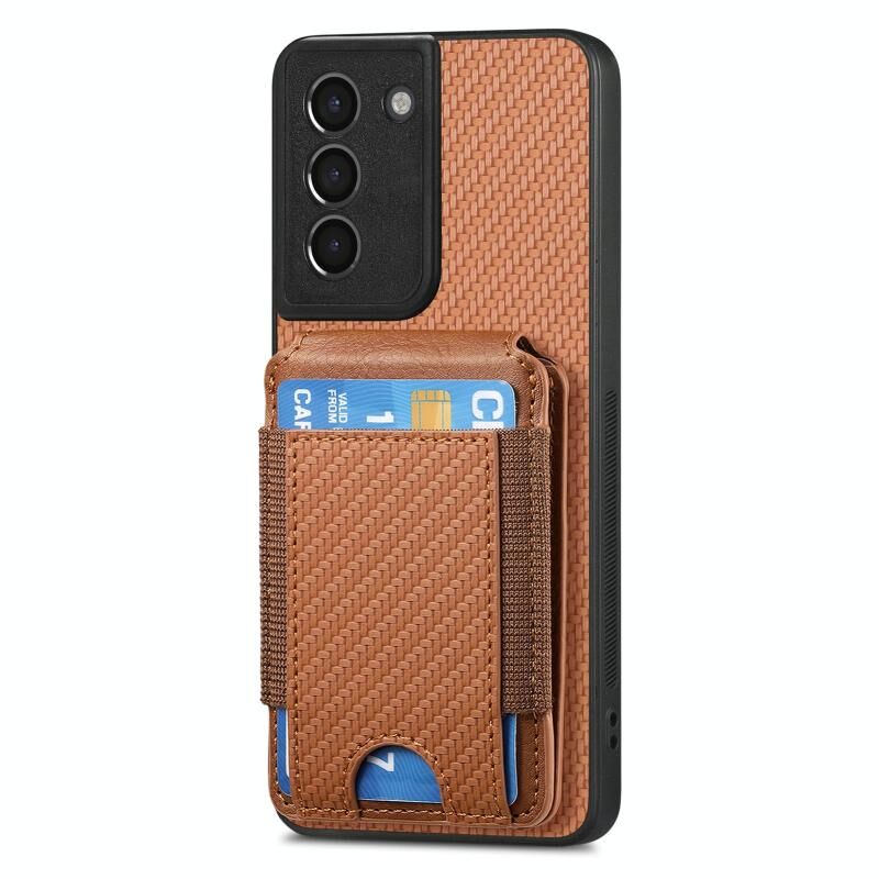Για Samsung Galaxy S21 + 5G Carbon Fiber Κάθετη Flip Wallet Stand υπόθεση τηλεφώνου (καφέ)