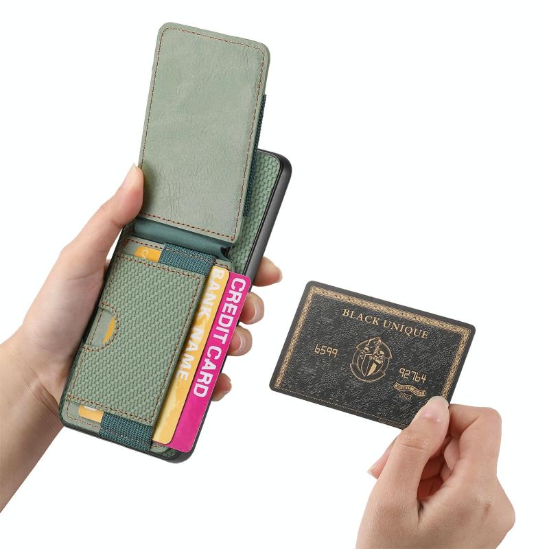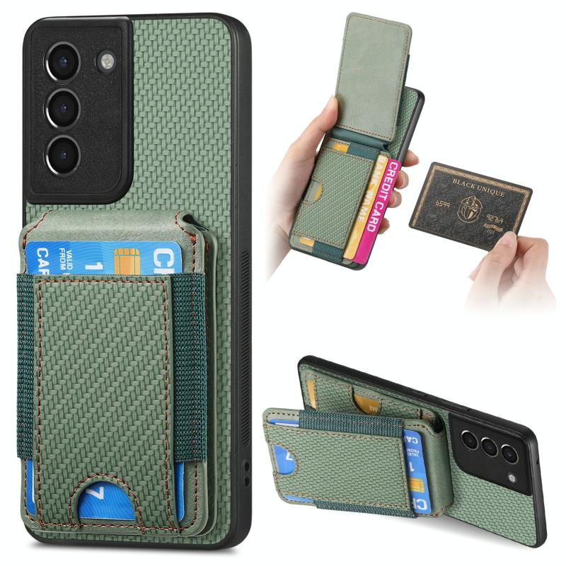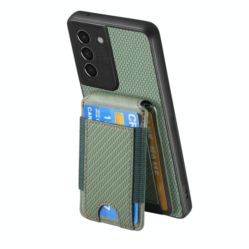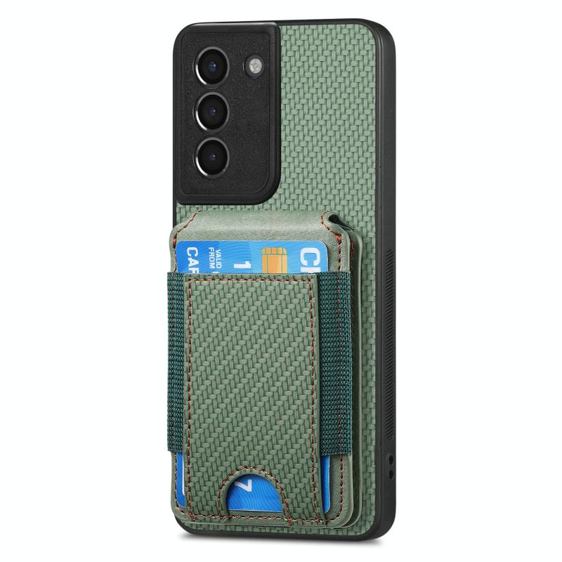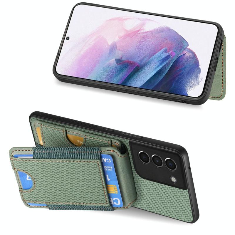 For Samsung Galaxy S21+ 5G Carbon Fiber Vertical Flip Wallet Stand Phone Case(Green)
