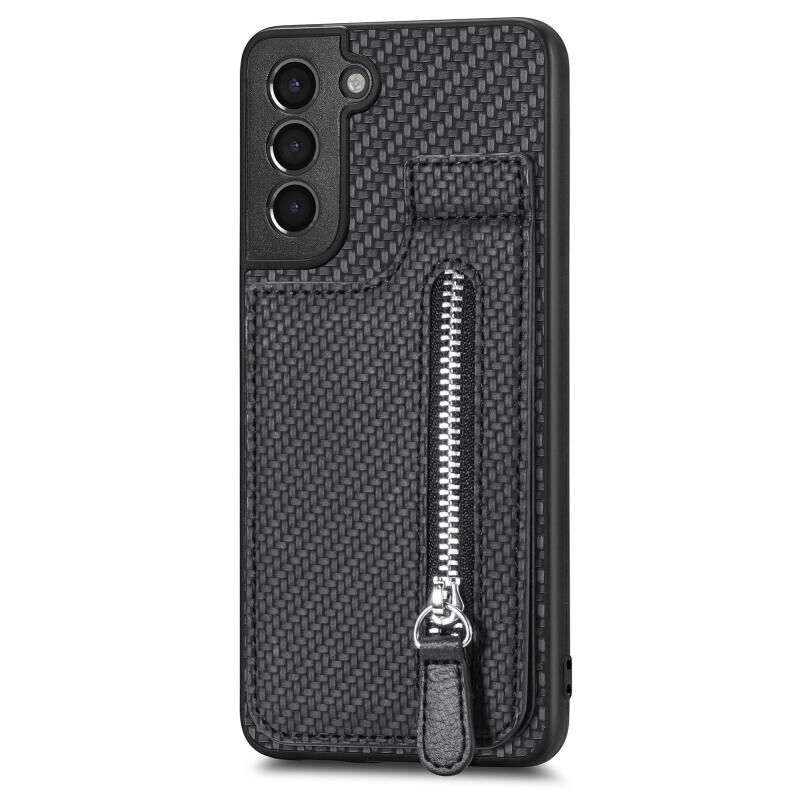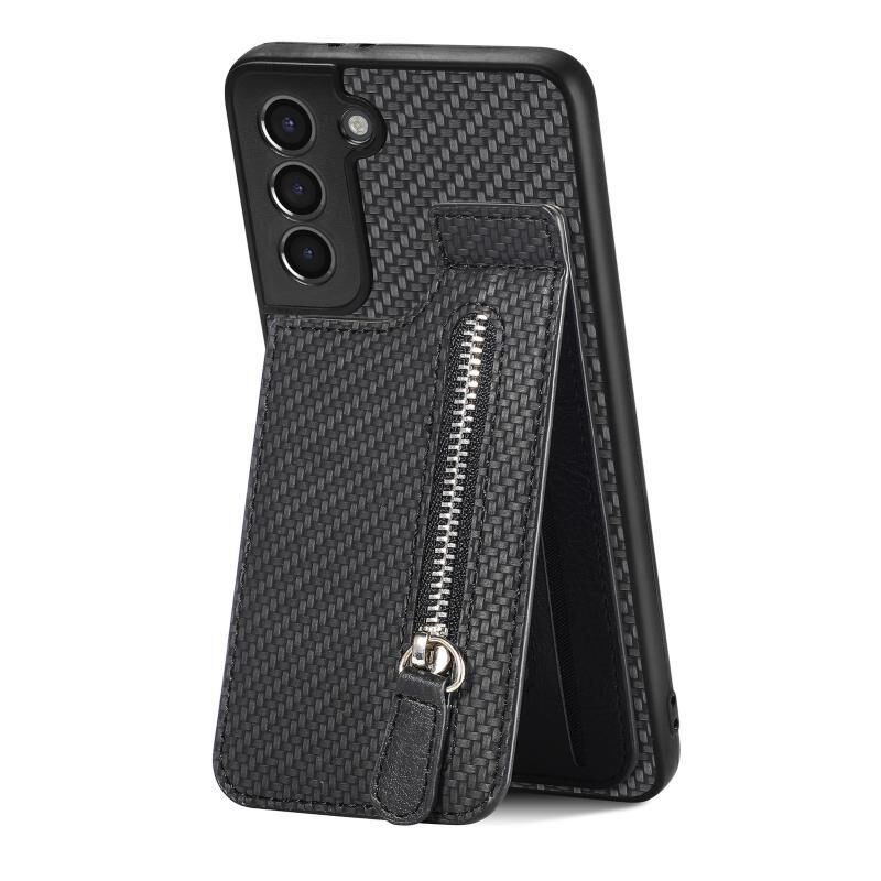 Για Samsung Galaxy S21 5G ινών άνθρακα 5G Κάθετη Flip φερμουάρ Wallet υπόθεση τηλεφώνου (μαύρο)