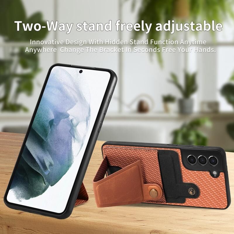 Για Samsung Galaxy S21 5G ινών άνθρακα ινών πορτοφόλι Flip κάρτα K-σχήμα κάτοχος θήκη τηλεφώνου (καφέ)