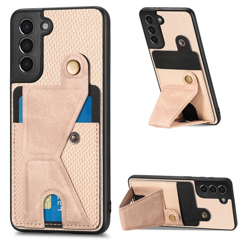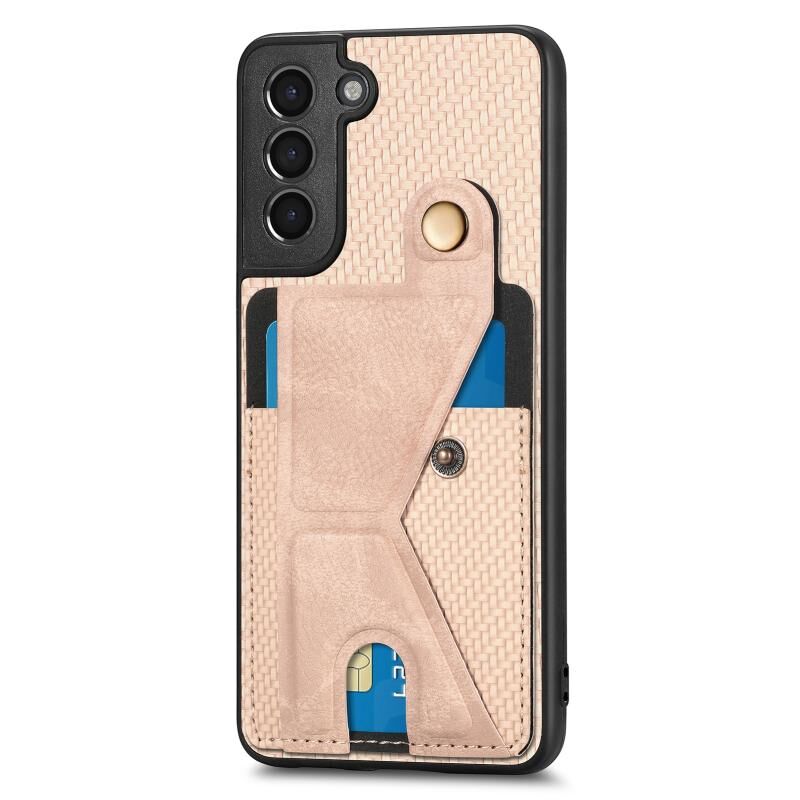 Για Samsung Galaxy S21 5G ινών άνθρακα ινών πορτοφόλι Flip κάρτα K-σχήμα κάτοχος υπόθεση τηλεφώνου (χακί)