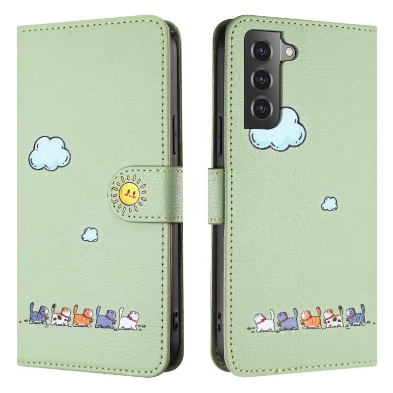 Θήκη τηλεφώνου Samsung Galaxy S21+ 5G από δέρμα με σχέδια χαριτωμένων γατών (Πράσινο)