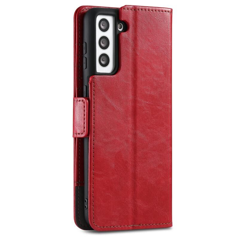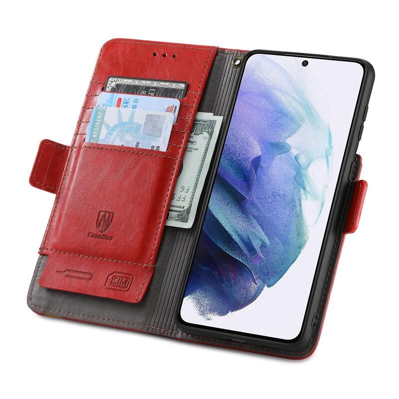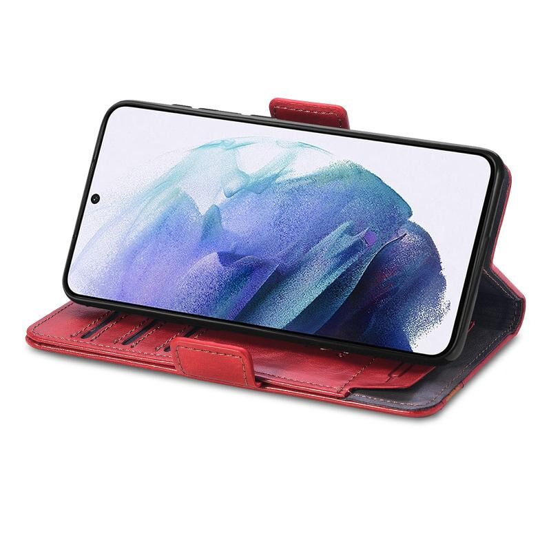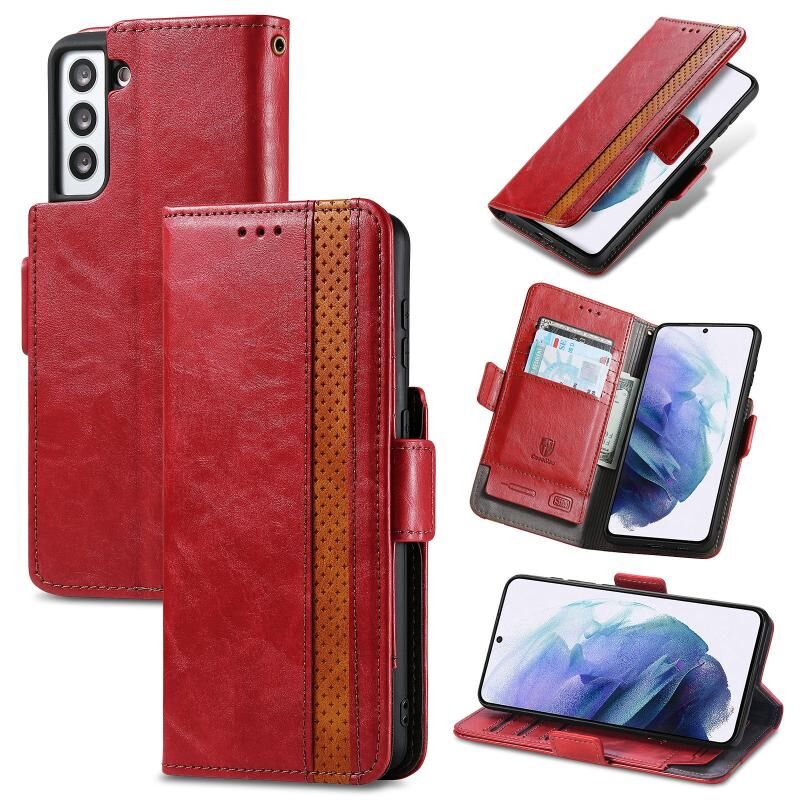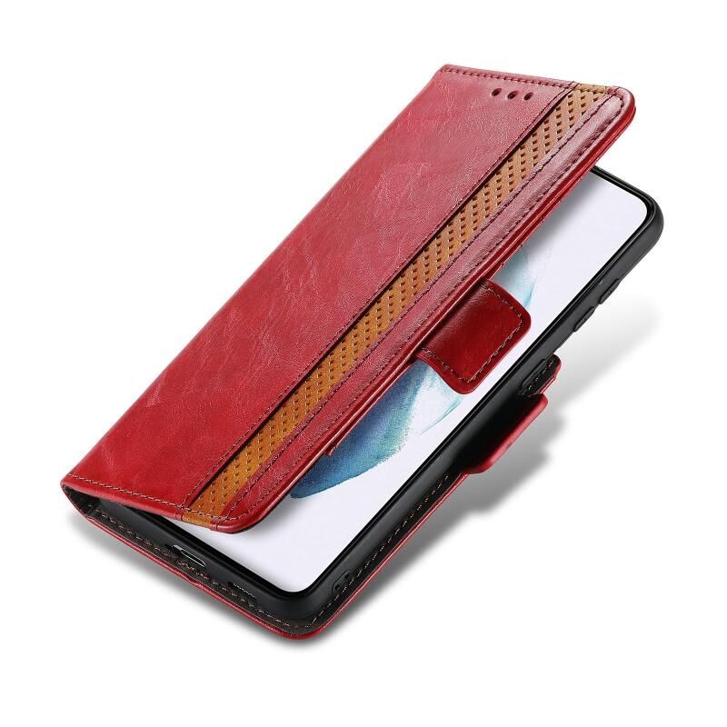 Για Samsung Galaxy S21 5G CaseNeo Business Splicing Διπλή μαγνητική πόρπη οριζόντια Flip PU δερμάτινη θήκη με κάτοχο & υποδοχές για κάρτες & πορτοφόλι (κόκκινο)