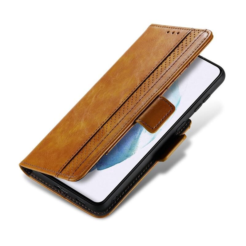 Για Samsung Galaxy S21 5G CaseNeo Business Splicing Διπλή μαγνητική πόρπη οριζόντια Flip PU δερμάτινη θήκη με κάτοχο & υποδοχές για κάρτες & πορτοφόλι (Κίτρινο)