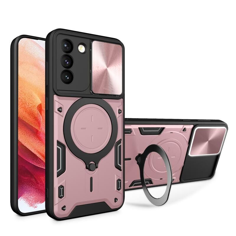 Θήκη κινητού τηλεφώνου για Samsung Galaxy S21+ 5G με υφή CD, συρόμενο προστατευτικό κάμερας και μαγνητική βάση (Ροζ)