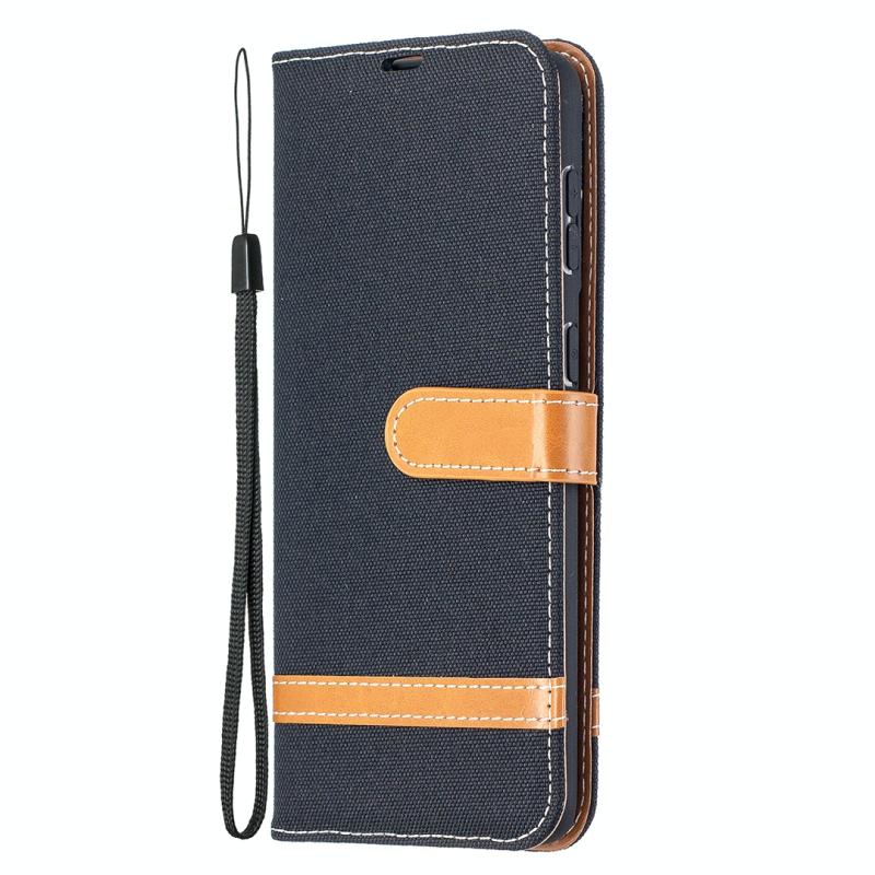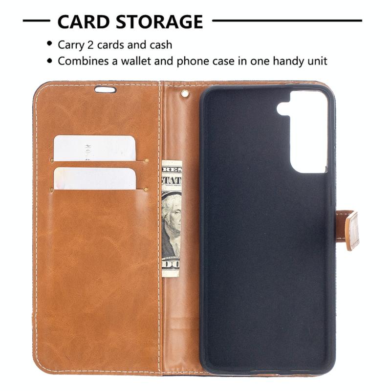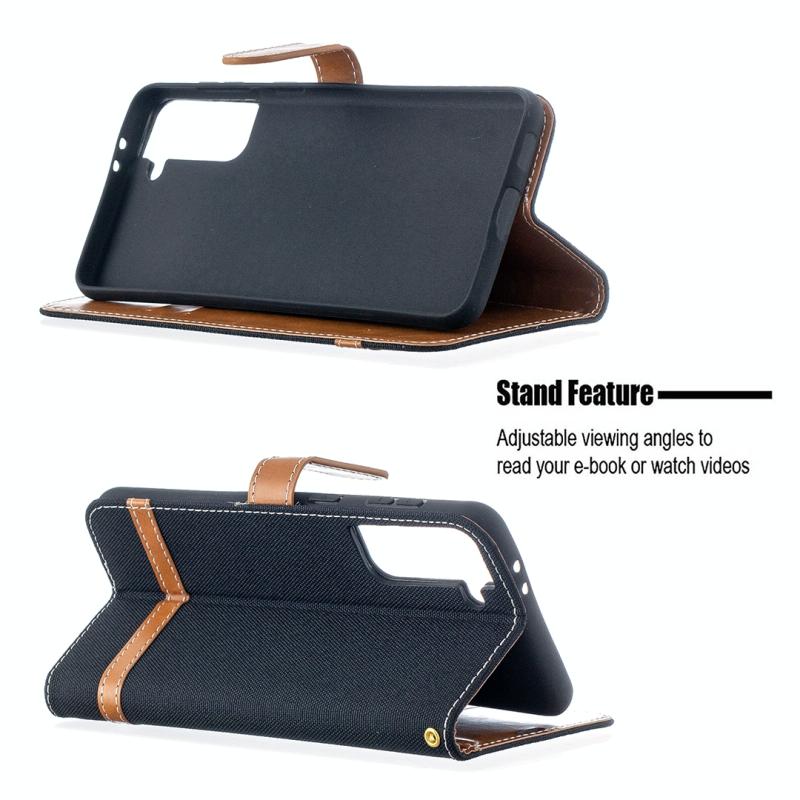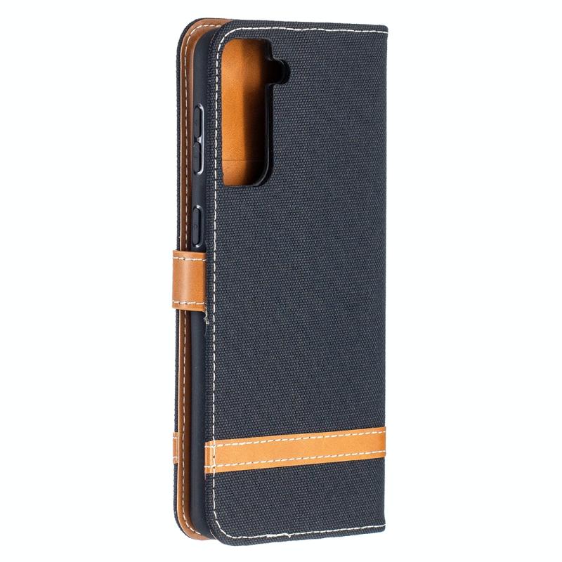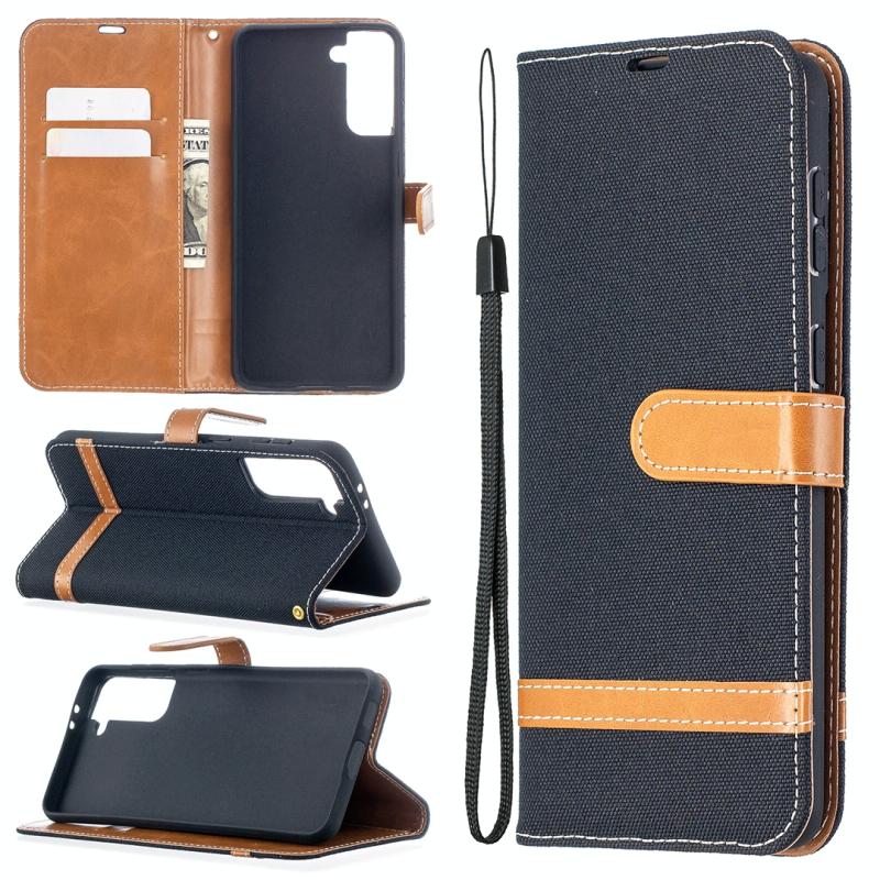 For Samsung Galaxy S21+ 5G Color Matching Denim Texture Horizontal Flip Leather Case with Holder & Card Slots & Wallet & Lanyard(Black)