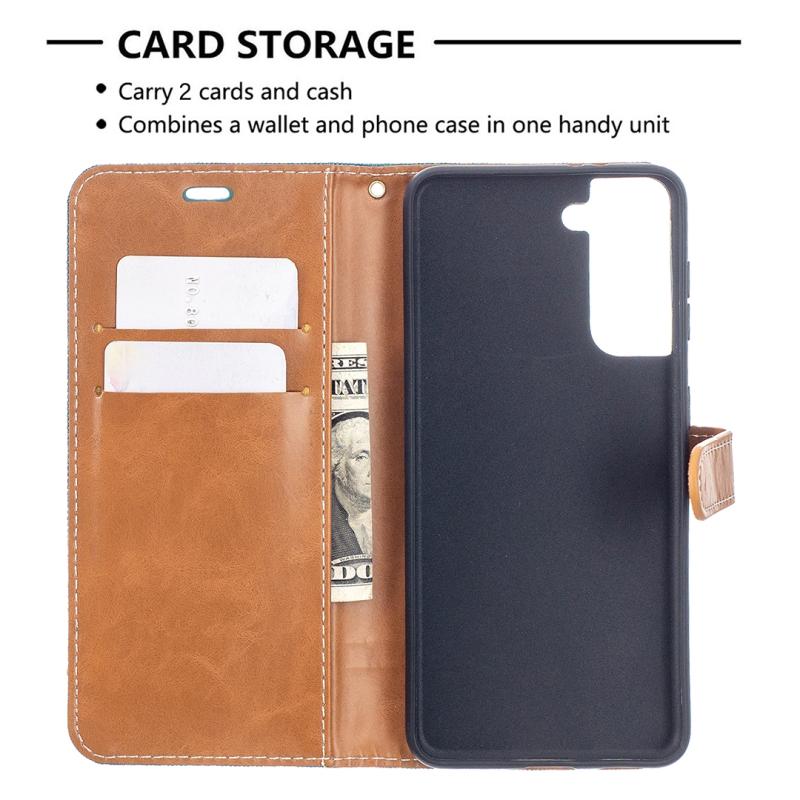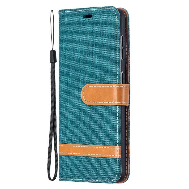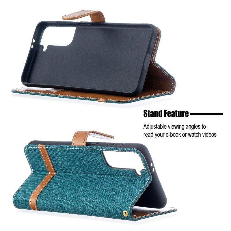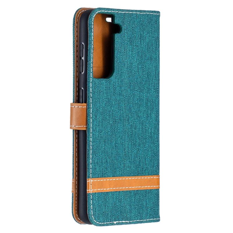 For Samsung Galaxy S21 5G Color Matching Denim Texture Horizontal Flip Leather Case with Holder & Card Slots & Wallet & Lanyard(Green)