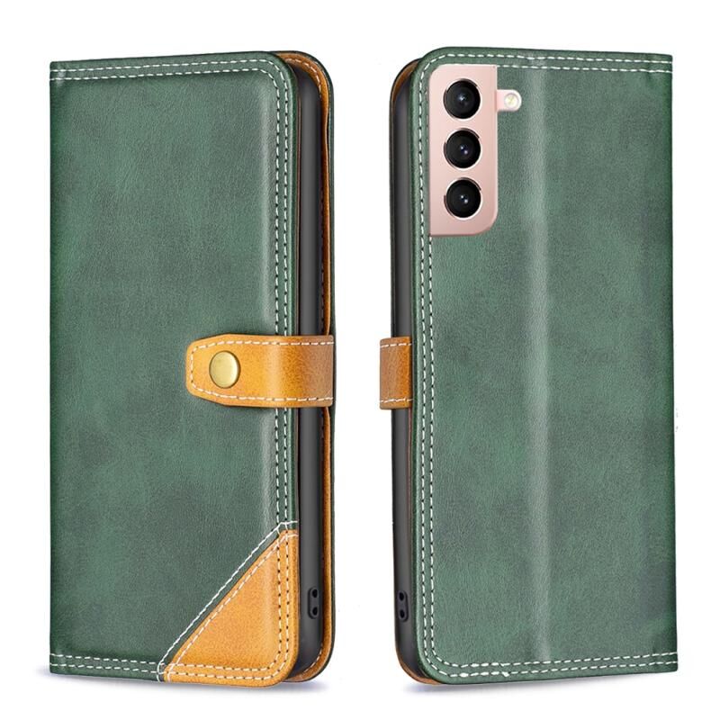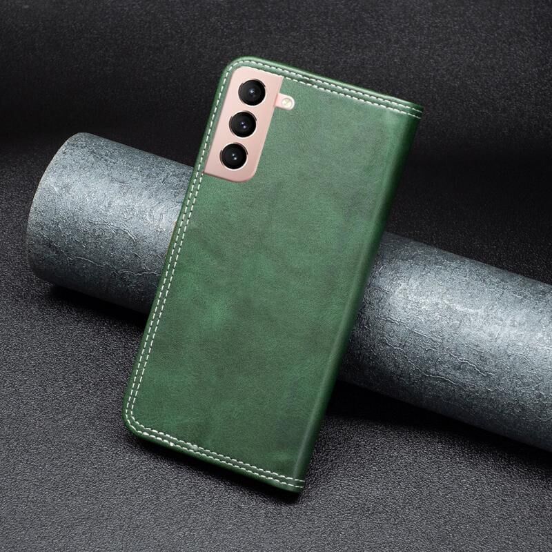 Θήκη τηλεφώνου Samsung Galaxy S21 5G από δέρμα με διπλή ραφή και αντιστοίχιση χρώματος (Μαύρο)