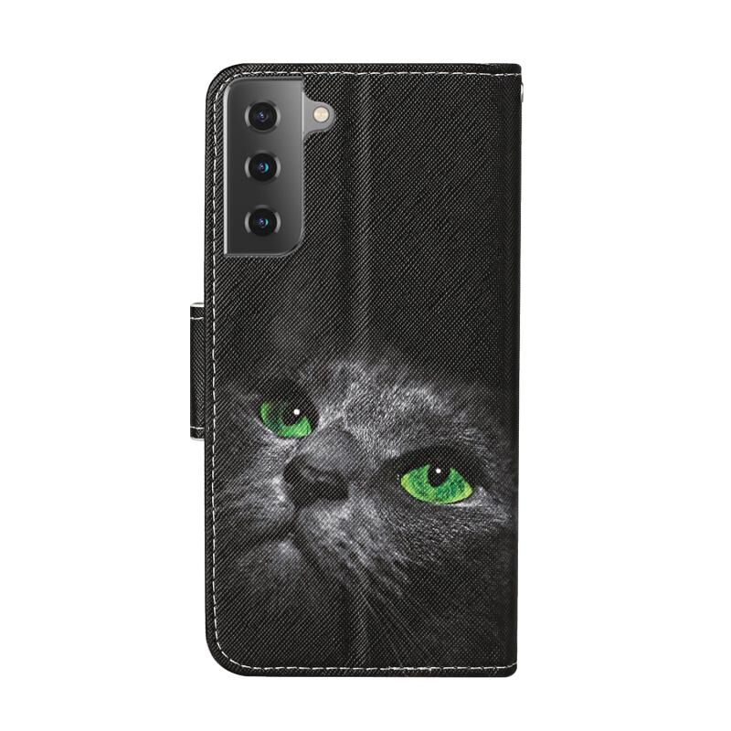 Θήκη δέρματος οριζόντιας αναδίπλωσης με σχέδιο πολύχρωμης ζωγραφικής για Samsung Galaxy S21 5G με βάση στήριξης & υποδοχές καρτών & πορτοφόλι & κορδόνι (Μαύρη Γάτα)