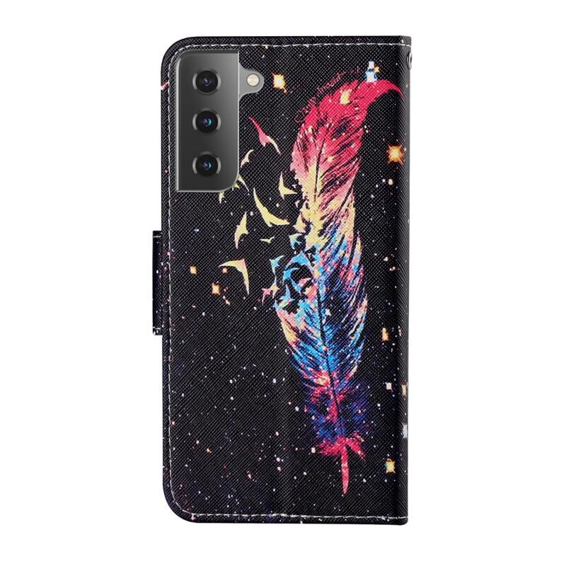 Θήκη δέρματος οριζόντιας αναδίπλωσης με σχέδιο πολύχρωμης ζωγραφικής για Samsung Galaxy S21 5G με βάση στήριξης & υποδοχές καρτών & πορτοφόλι & κορδόνι (Φτερό)