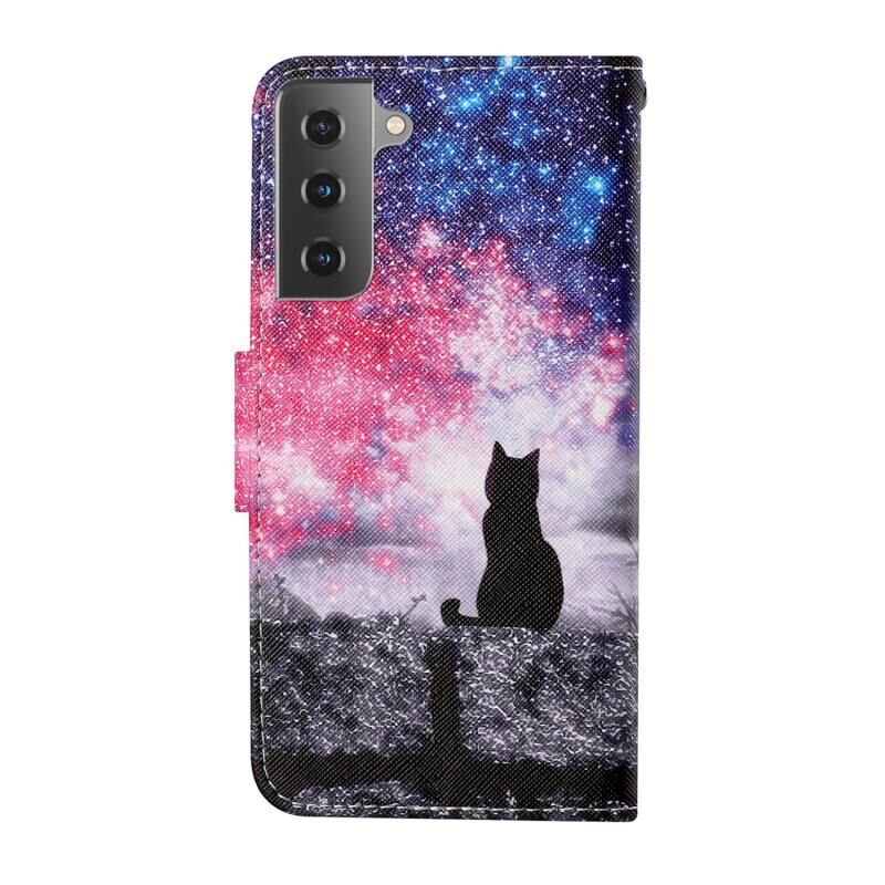 For Samsung Galaxy S21+ 5G Colored Drawing Pattern Horizontal Flip Leather Case with Holder & Card Slots & Wallet & Lanyard(Starry Cat)
