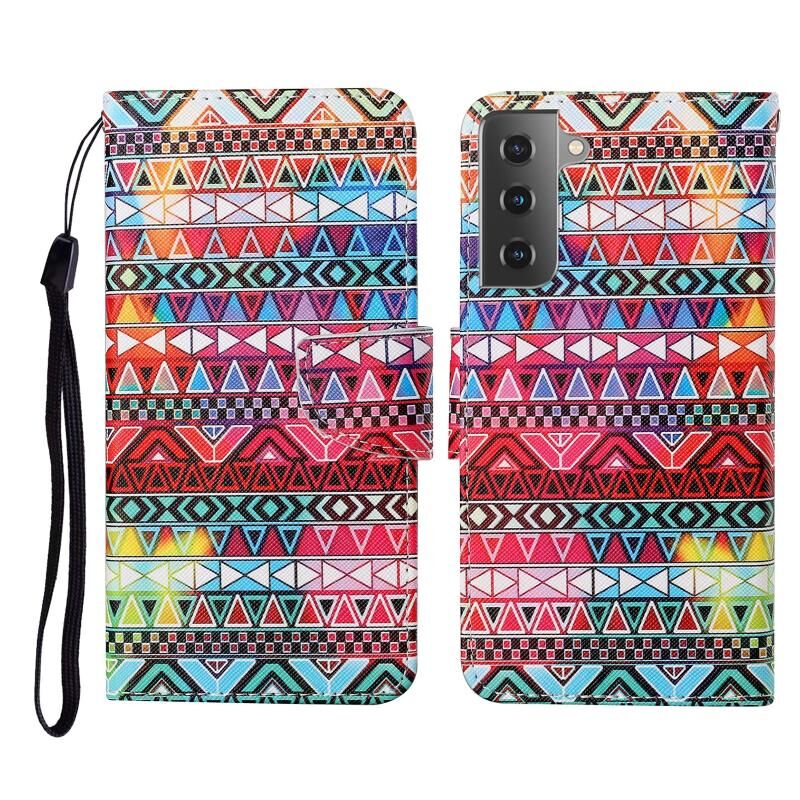 Θήκη δέρματος οριζόντιας αναδίπλωσης με σχέδιο πολύχρωμης ζωγραφικής για Samsung Galaxy S21+ 5G με βάση στήριξης & θήκες καρτών & πορτοφόλι & κορδόνι (Εθνικό στυλ φυλής)