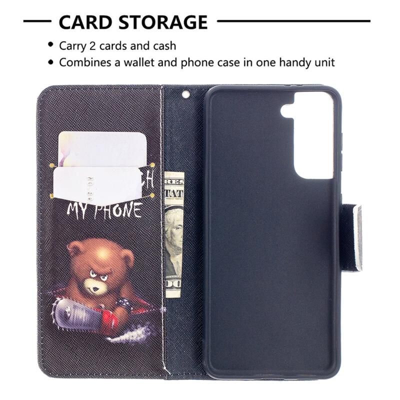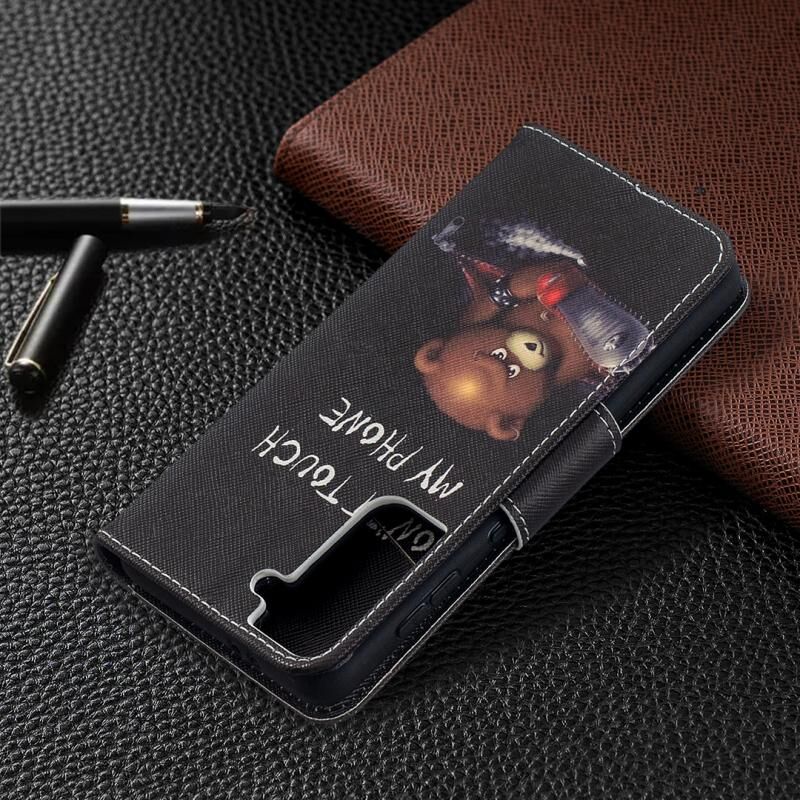 Θήκη δέρματος οριζόντιας αναδίπλωσης με σχέδιο ζωγραφικής και χρώματα για Samsung Galaxy S21 5G με βάση για κάρτες και πορτοφόλι (Αρκούδα)
