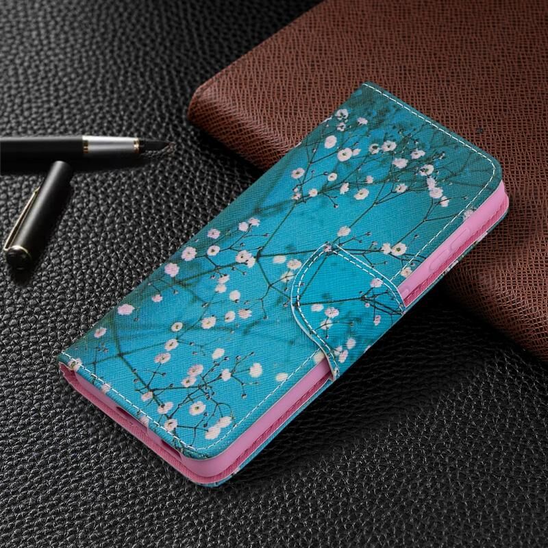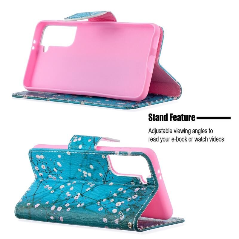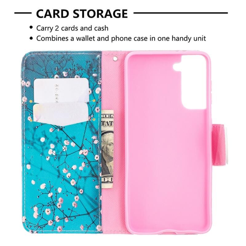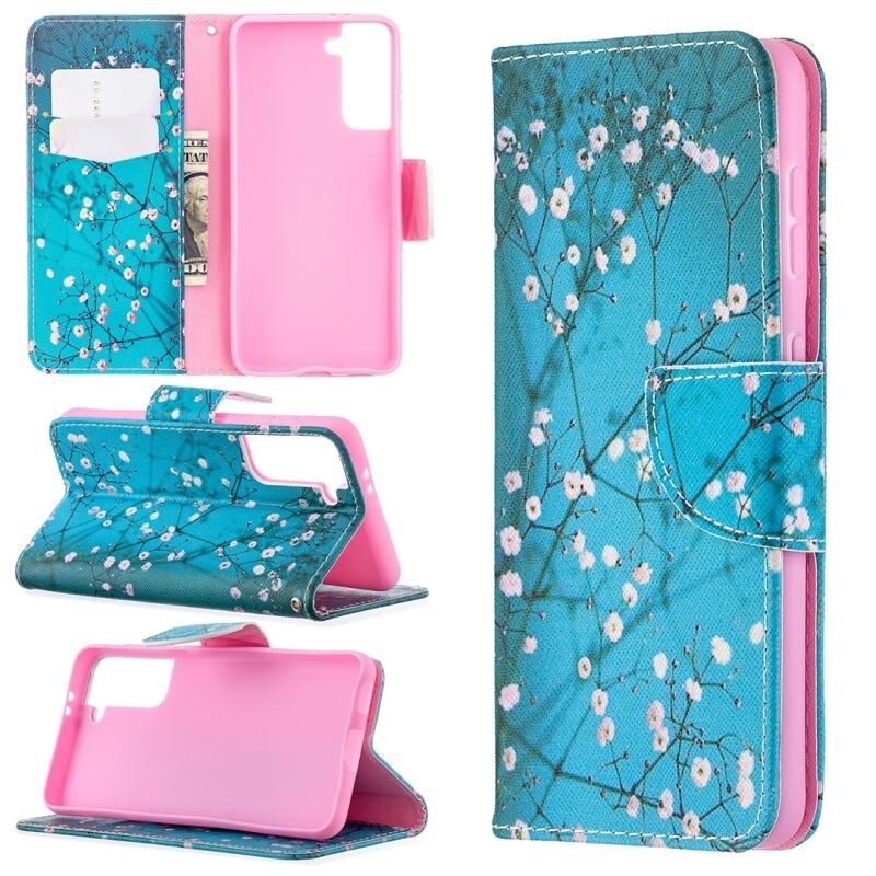 Θήκη δέρματος οριζόντιας αναδίπλωσης με σχέδιο ζωγραφικής σε χρώματα για Samsung Galaxy S21 5G με βάση για κάρτες & θήκη πορτοφολιού (Λουλούδι Δαμασκηνιάς)