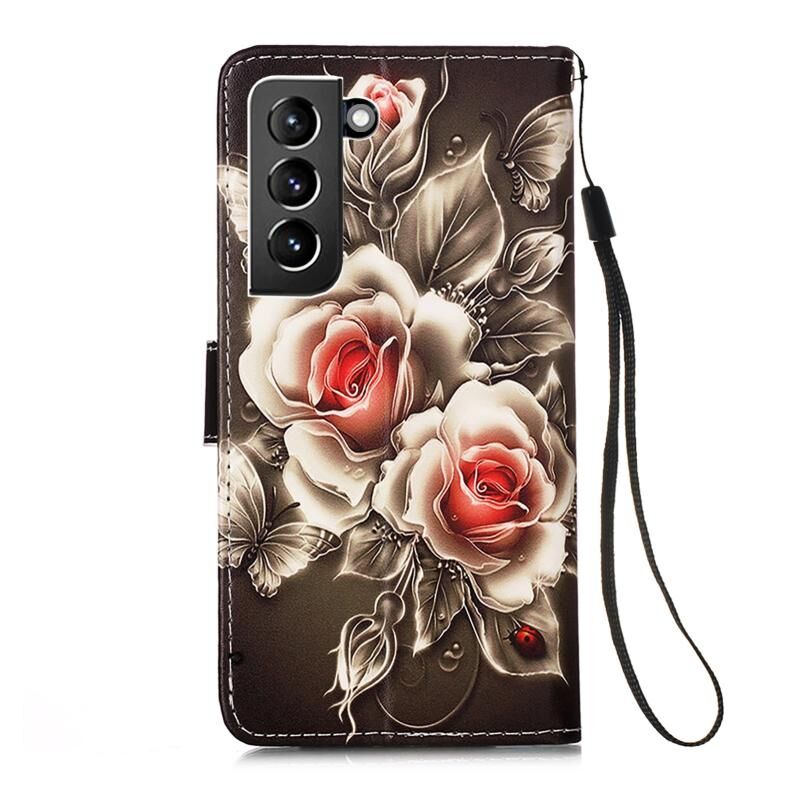Θήκη δέρματος οριζόντιας αναδίπλωσης για Samsung Galaxy S21+ 5G με σχέδιο πολύχρωμης ζωγραφικής, απλή ύφανση, με βάση & υποδοχή κάρτας & πορτοφόλι & κορδόνι (Τίγρης σε Μαύρο και Λευκό)
