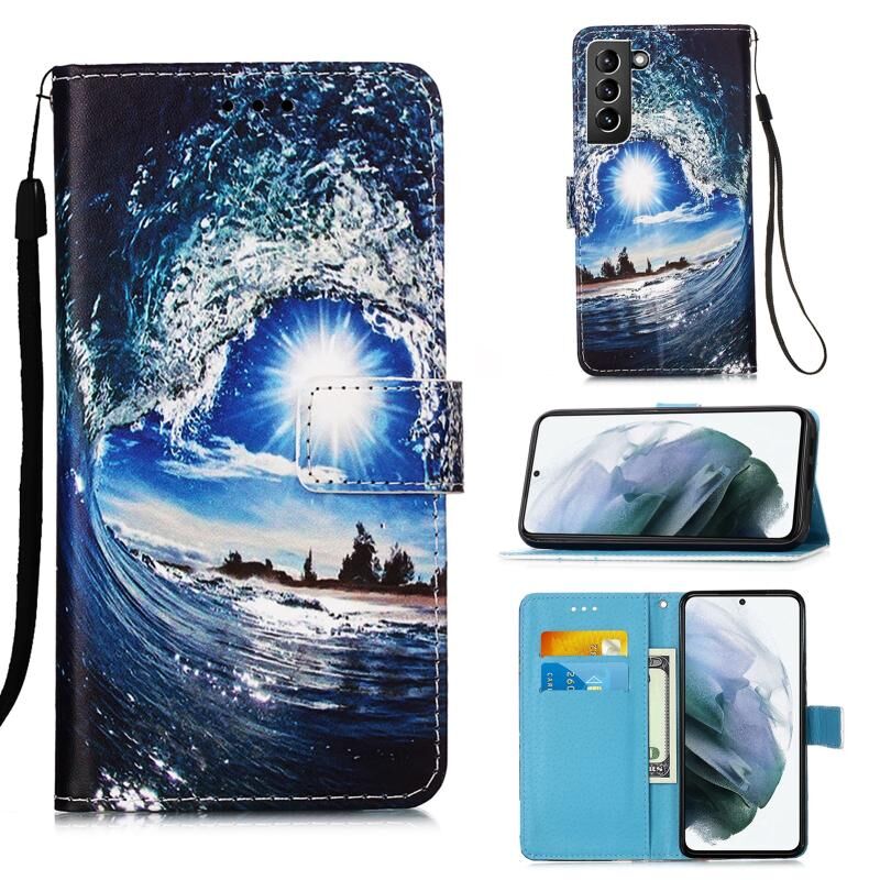 Θήκη δέρματος οριζόντιας αναδίπλωσης για Samsung Galaxy S21+ 5G με σχέδιο πολύχρωμης ζωγραφικής, απλή ύφανση, με βάση στήριξης, θήκη για κάρτες, πορτοφόλι & λουρί (Υποθαλάσσιος Μάνταλα)
