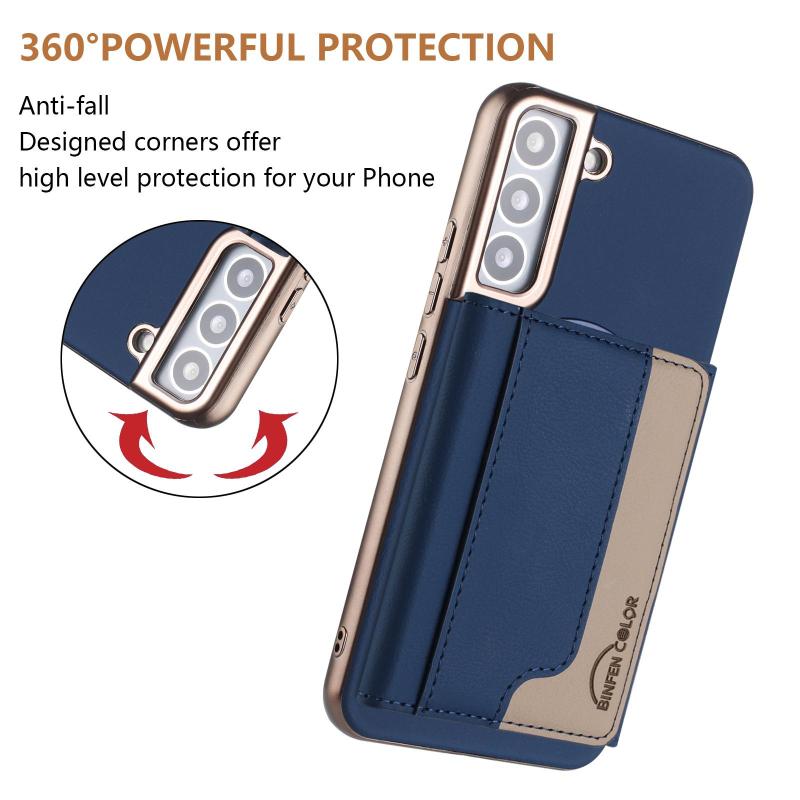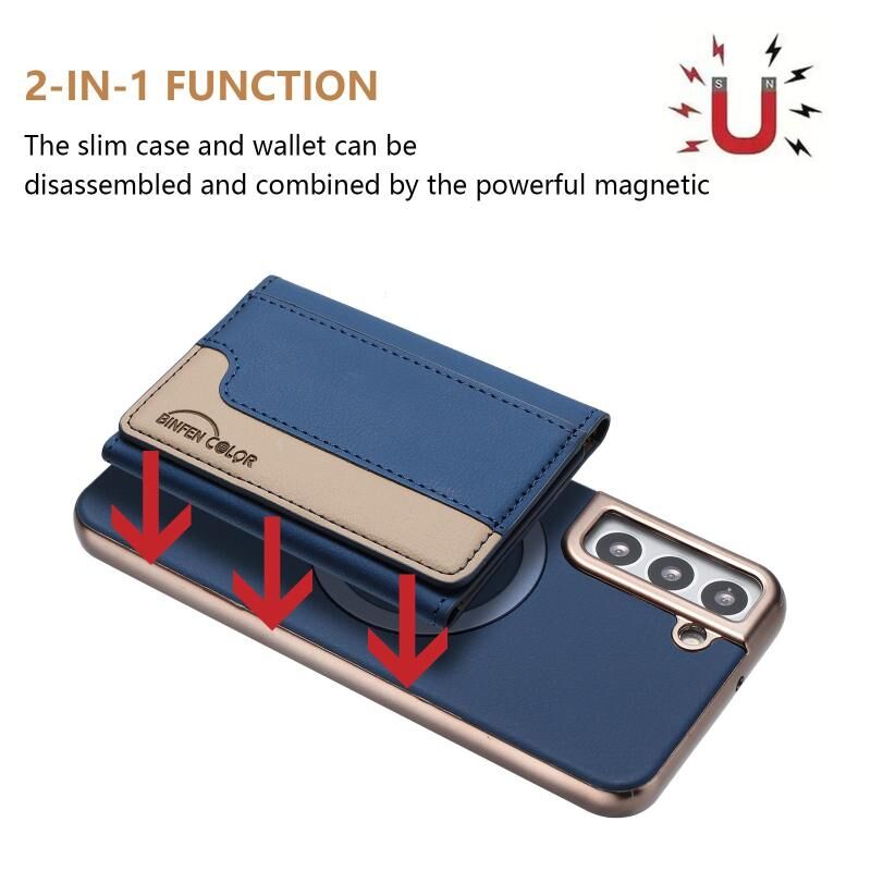For Samsung Galaxy S21+ 5G Colour Matching Horizontal Magnetic Card Bag RFID MagSafe Phone Case(Dark Blue)