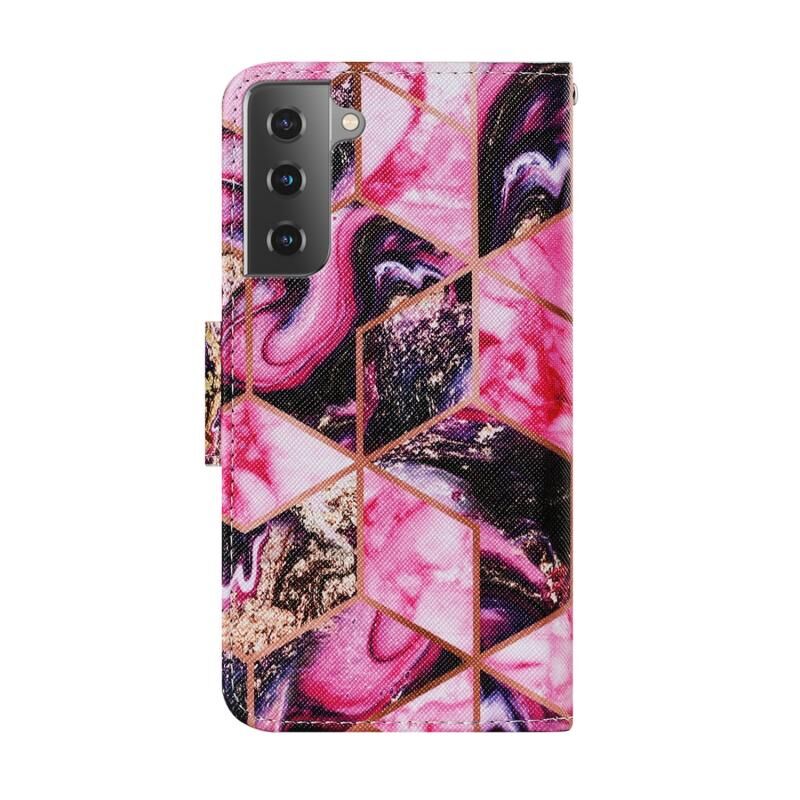 Θήκη Samsung Galaxy S21+ 5G με πολύχρωμο σχέδιο, οριζόντια αναδιπλούμενη από δερματίνη PU με βάση στήριξης, θήκες για κάρτες, πορτοφόλι & λουρί (Μαύρο Μάρμαρο)