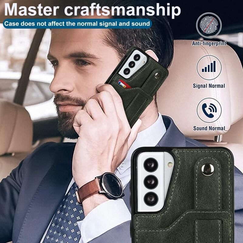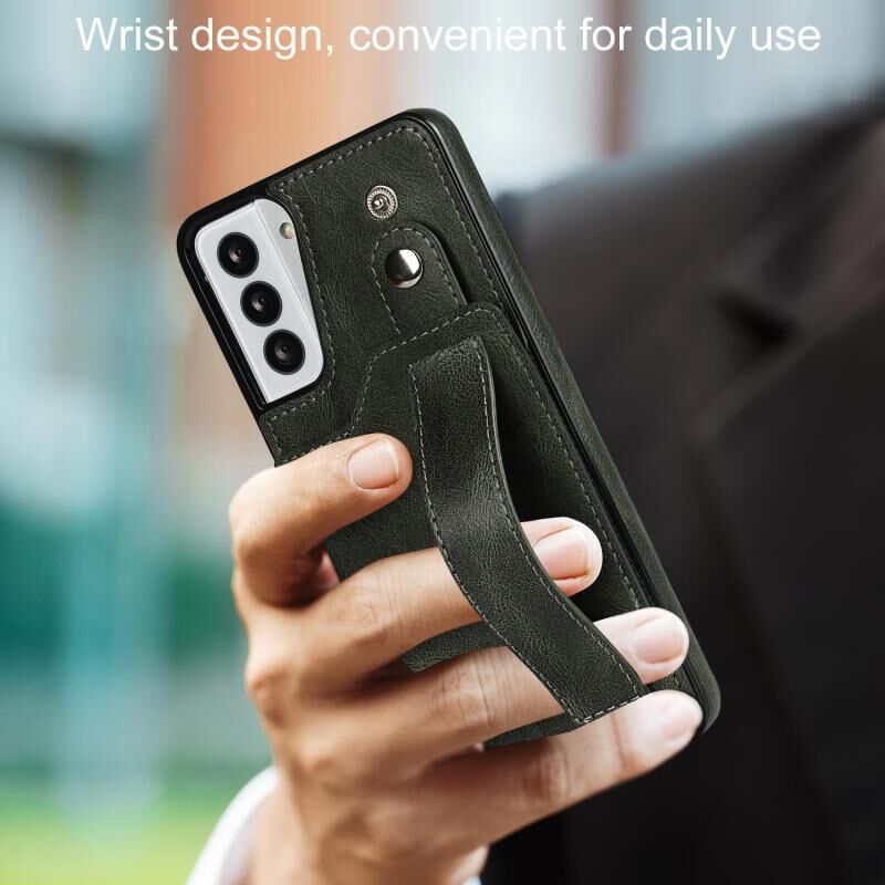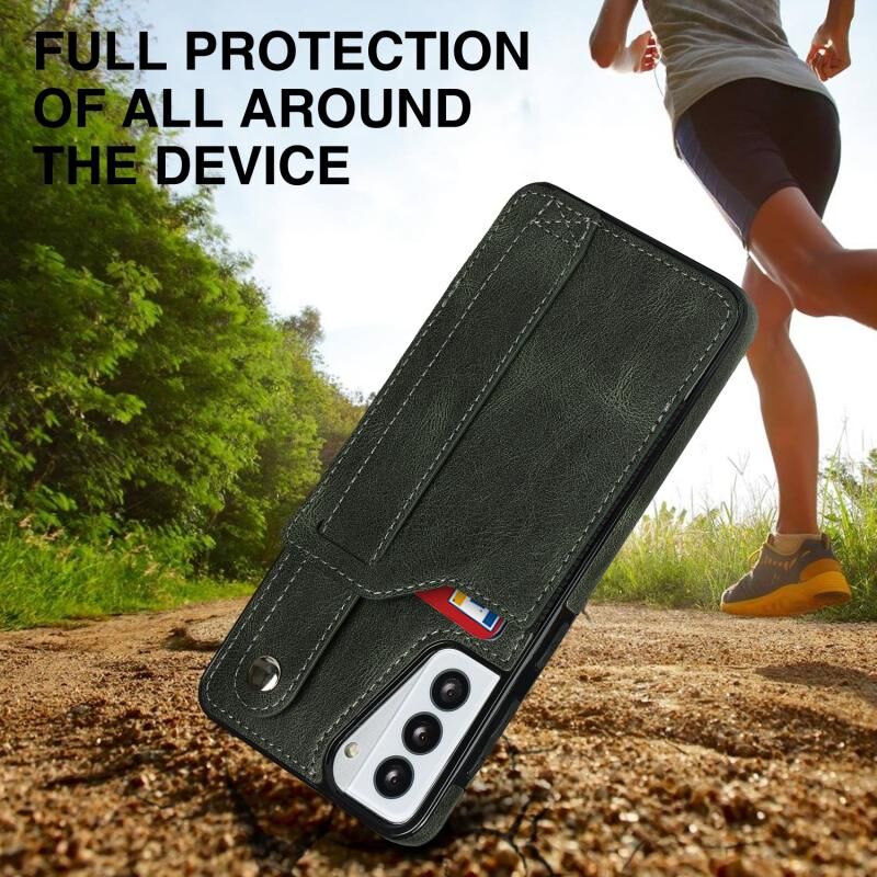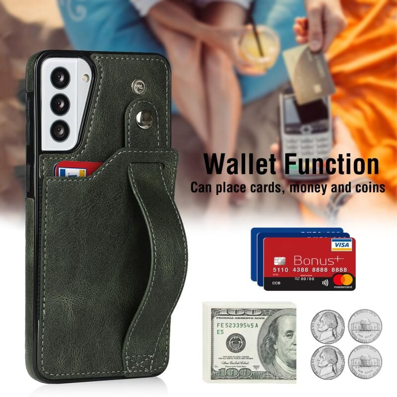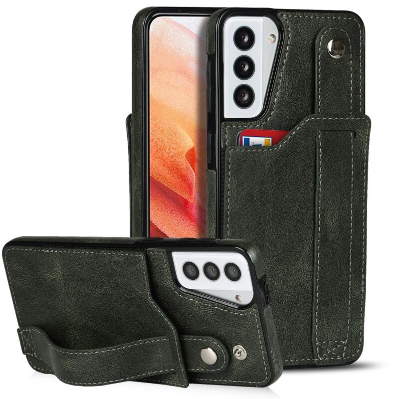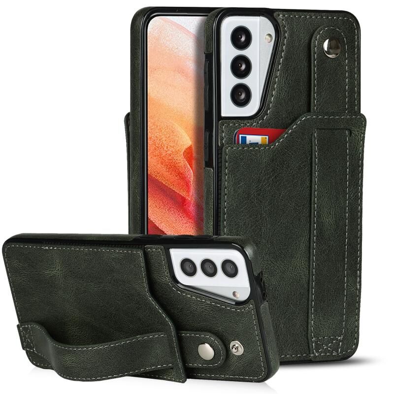 Για Samsung Galaxy S21 5G Crazy Horse Υφή Shockproof TPU + PU δέρμα υπόθεση με υποδοχή για κάρτες & λουράκι καρπού κάτοχος (Emerald Green)