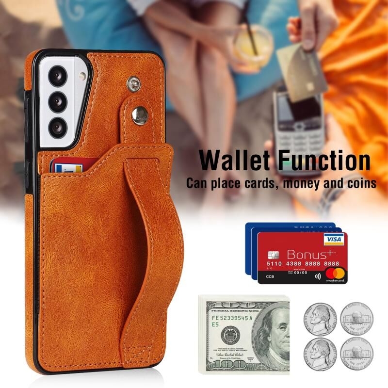Για το Samsung Galaxy S21+ 5G Crazy Horse Texture Shockproof TPU + PU δέρμα υπόθεση με υποδοχή κάρτας & στήριγμα λουράκι καρπού (κίτρινο)