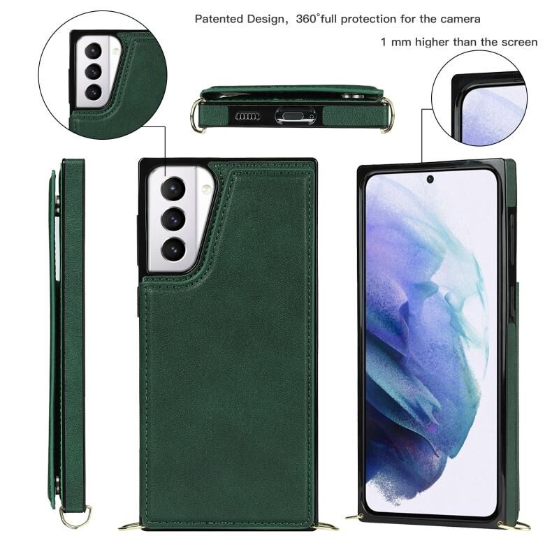 Για Samsung Galaxy S21+ 5G Cross-body τετράγωνο διπλό πόρπη Flip κάρτα τσάντα TPU + PU υπόθεση με υποδοχές για κάρτες & πορτοφόλι & φωτογραφία & λουράκι (πράσινο)