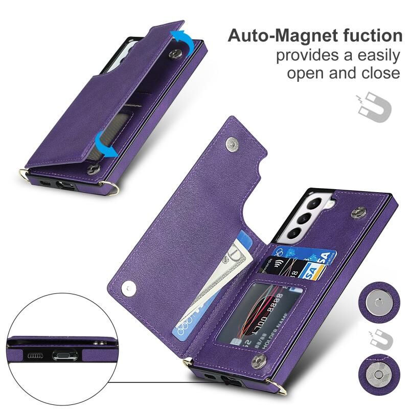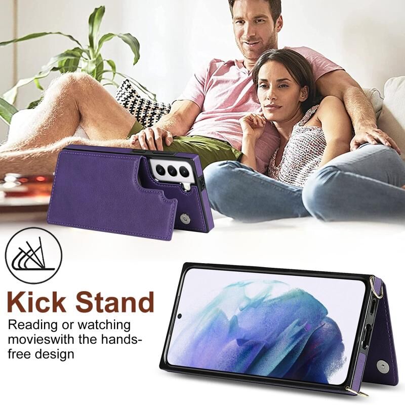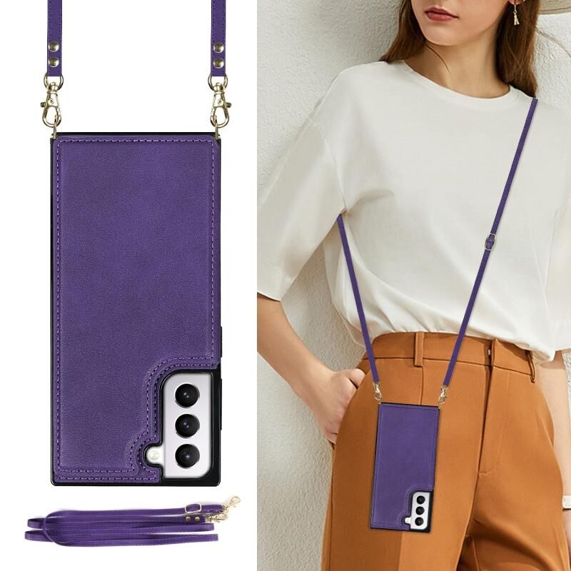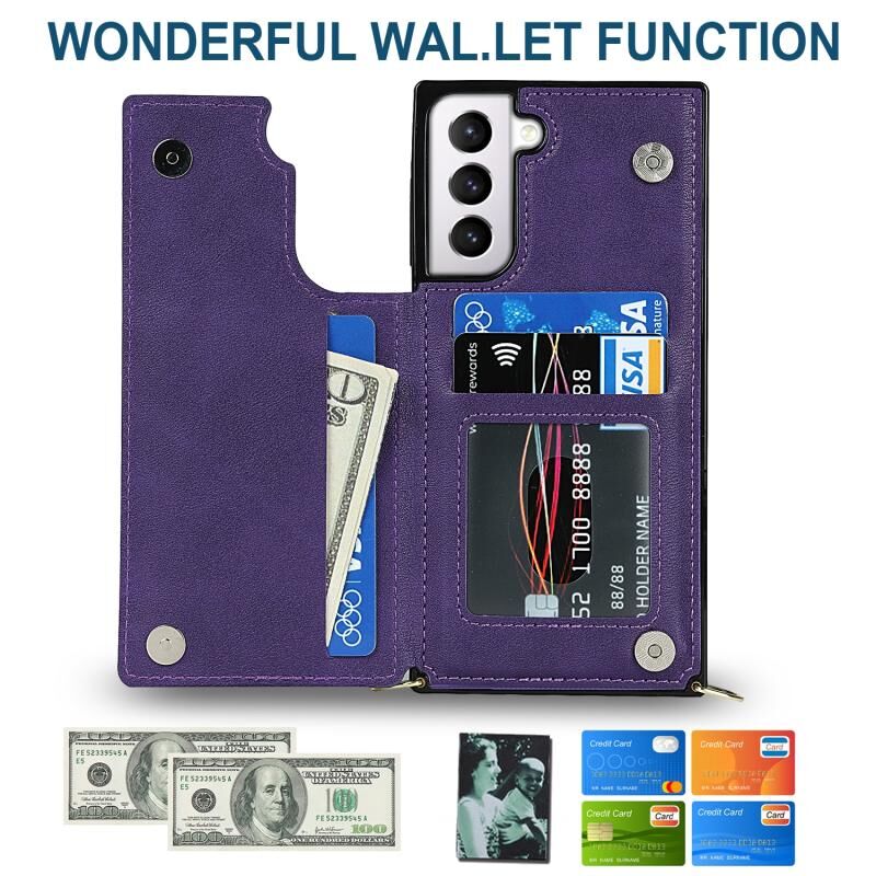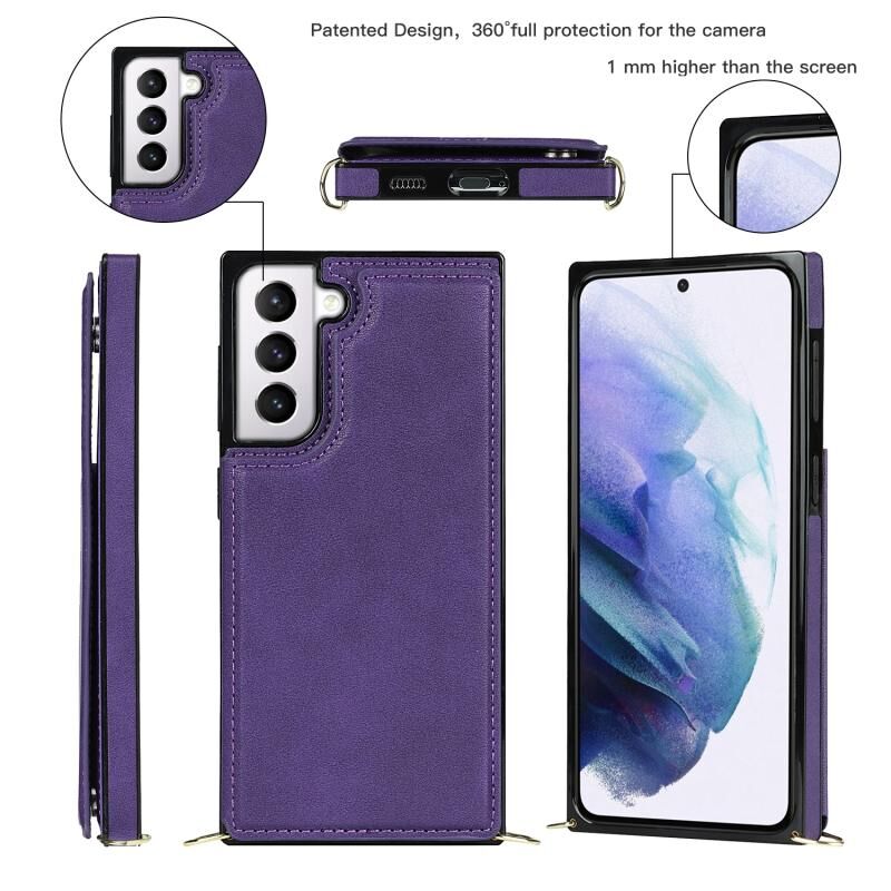 Για Samsung Galaxy S21 5G Cross-body Square Double Buckle Flip Card Bag TPU + PU υπόθεση με υποδοχές για κάρτες & πορτοφόλι & φωτογραφία & λουράκι (μωβ)