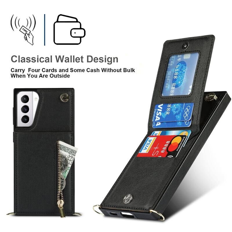 Για Samsung Galaxy S21+ 5G Cross-body φερμουάρ τετράγωνο TPU + PU πίσω κάλυμμα θήκη με θήκη & υποδοχές για κάρτες & πορτοφόλι & λουράκι (Μαύρο)