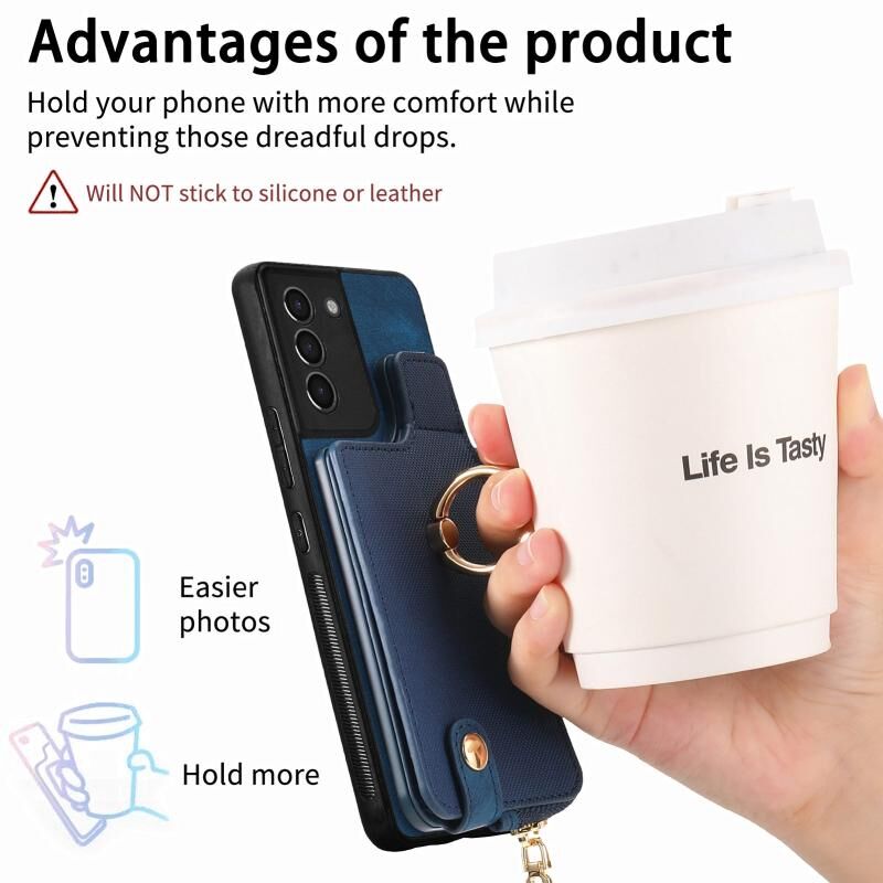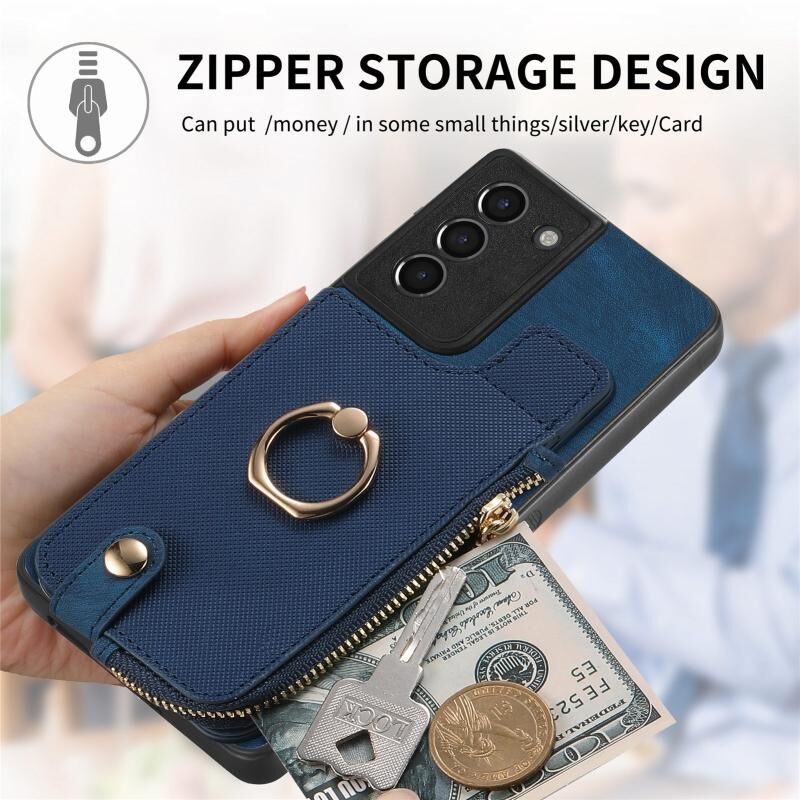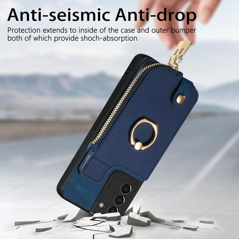 Για Samsung Galaxy S21 5G Cross Δερμάτινο δαχτυλίδι κάθετη φερμουάρ πορτοφόλι πίσω υπόθεση τηλεφώνου (μπλε)