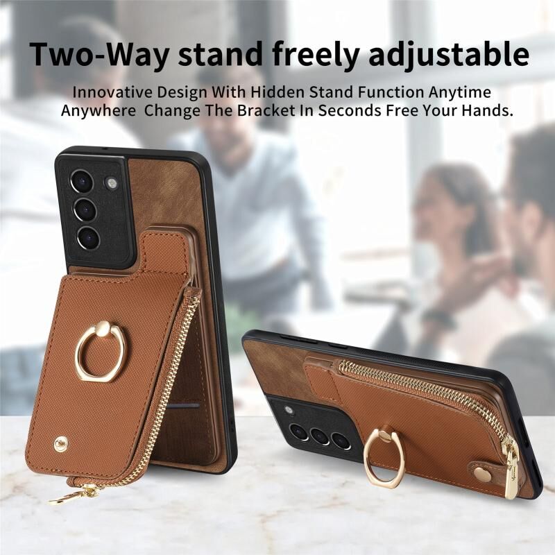 Για Samsung Galaxy S21 + 5G Cross Δερμάτινο δαχτυλίδι κάθετη φερμουάρ πορτοφόλι πίσω υπόθεση τηλεφώνου (καφέ)