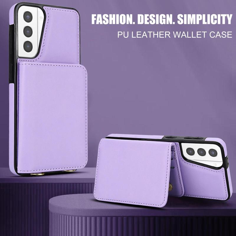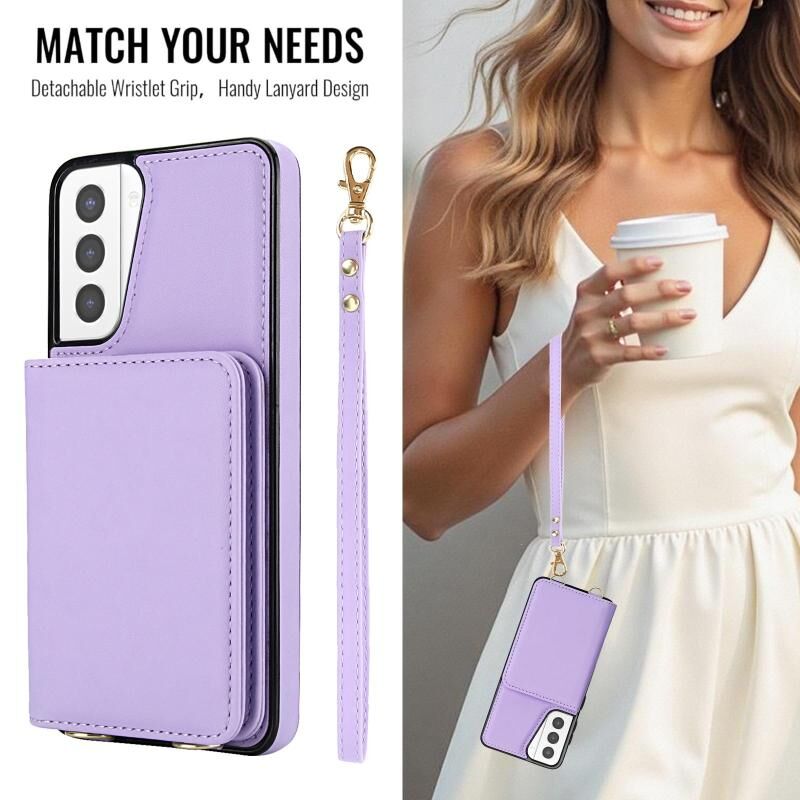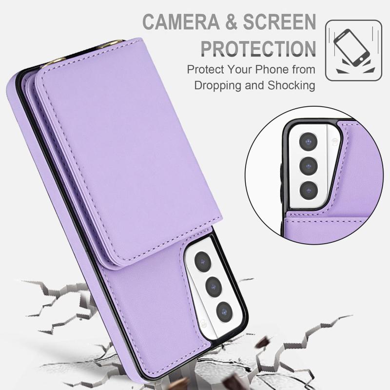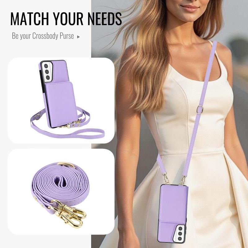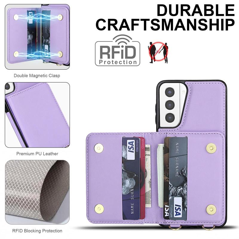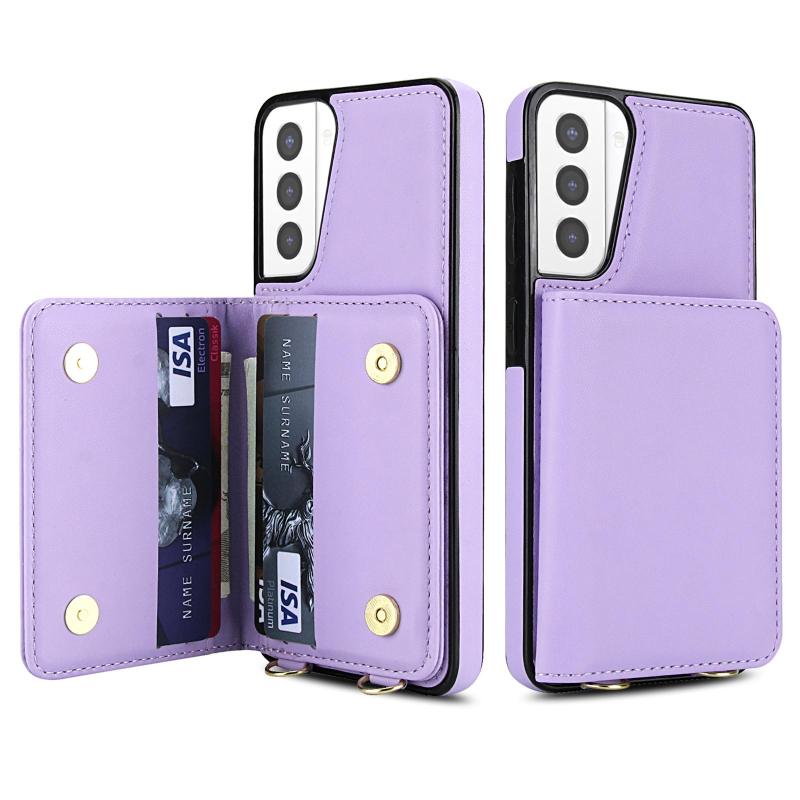 For Samsung Galaxy S21 5G Crossbody Dual-buckle Wallet RFID Back Leather Phone Case(Light Purple)
