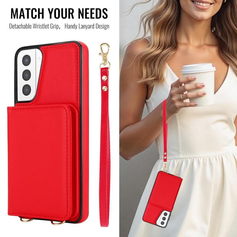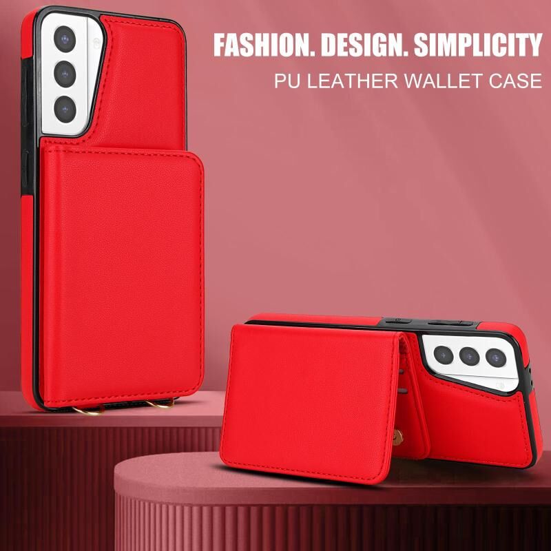 For Samsung Galaxy S21+ 5G Crossbody Dual-buckle Wallet RFID Back Leather Phone Case(Red)