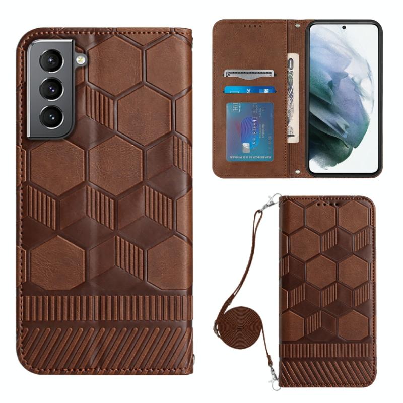 Θήκη κινητού τηλεφώνου Samsung Galaxy S21 5G, διαγώνια, με υφή ποδοσφαίρου, μαγνητική, από PU δέρμα (Καφέ)