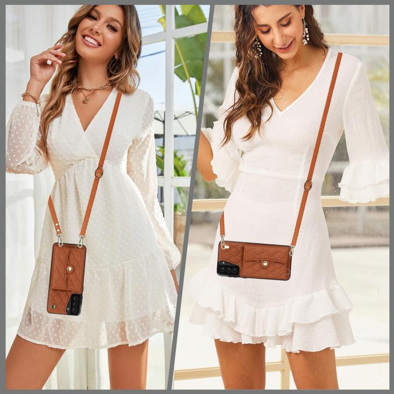 Θήκη Samsung Galaxy S21 5G Δερμάτινη Wallet Crossbody Ρομβοειδής Οριζόντια (Καφέ)