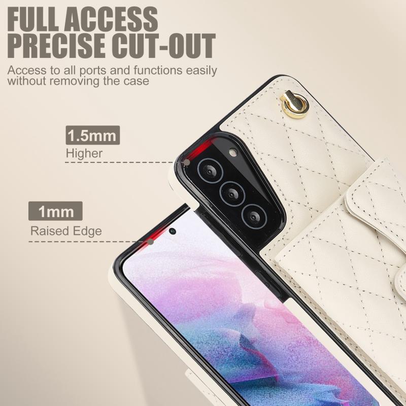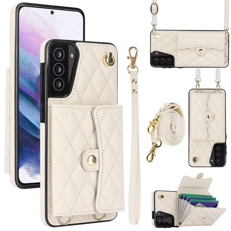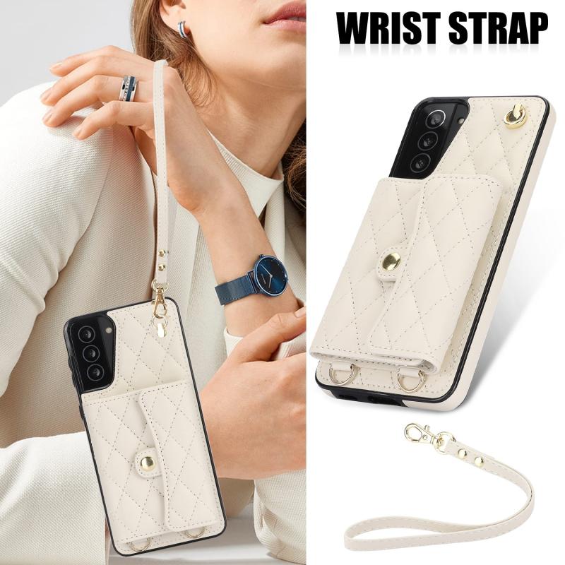 For Samsung Galaxy S21 5G Crossbody Rhombic Horizontal Wallet Leather Phone Case(White)