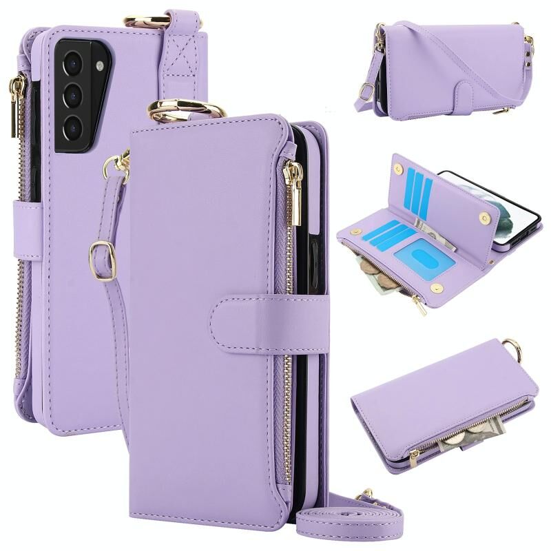 Για Samsung Galaxy S21+ 5G Δαχτυλίδι Crossbody Πολυλειτουργική δερμάτινη θήκη τηλεφώνου πορτοφόλι (μωβ)