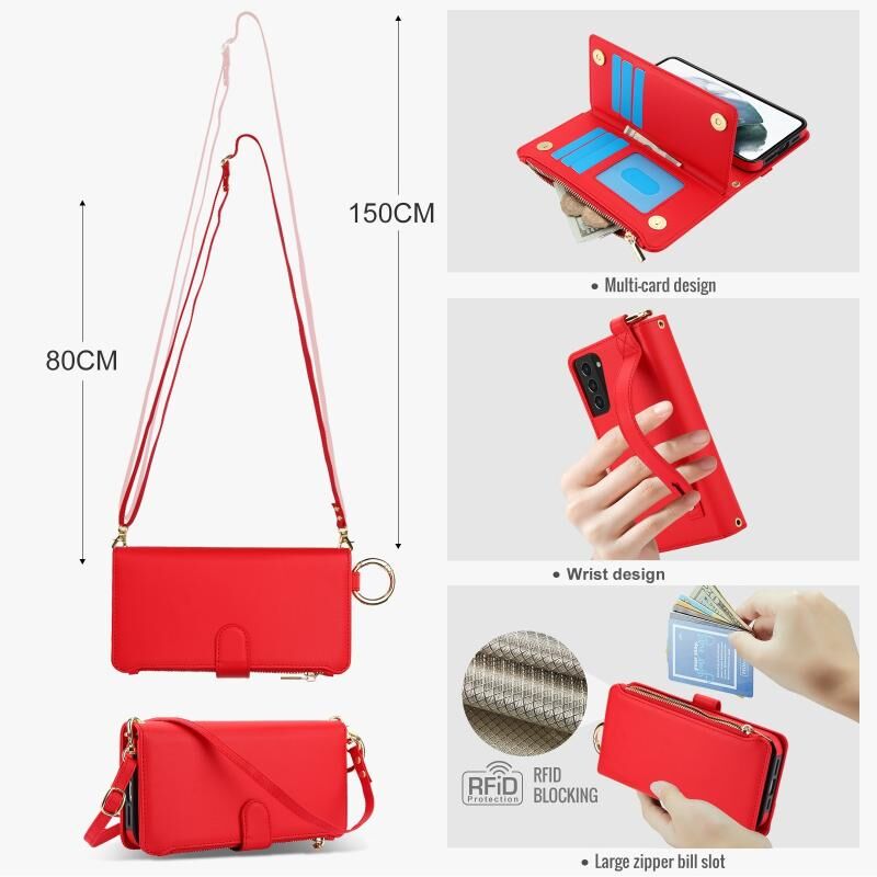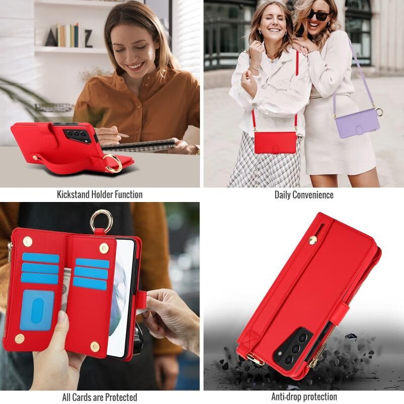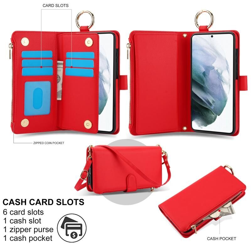 Για Samsung Galaxy S21 5G Δαχτυλίδι Crossbody Πολυλειτουργική θήκη τηλεφώνου πορτοφόλι δέρμα (κόκκινο)