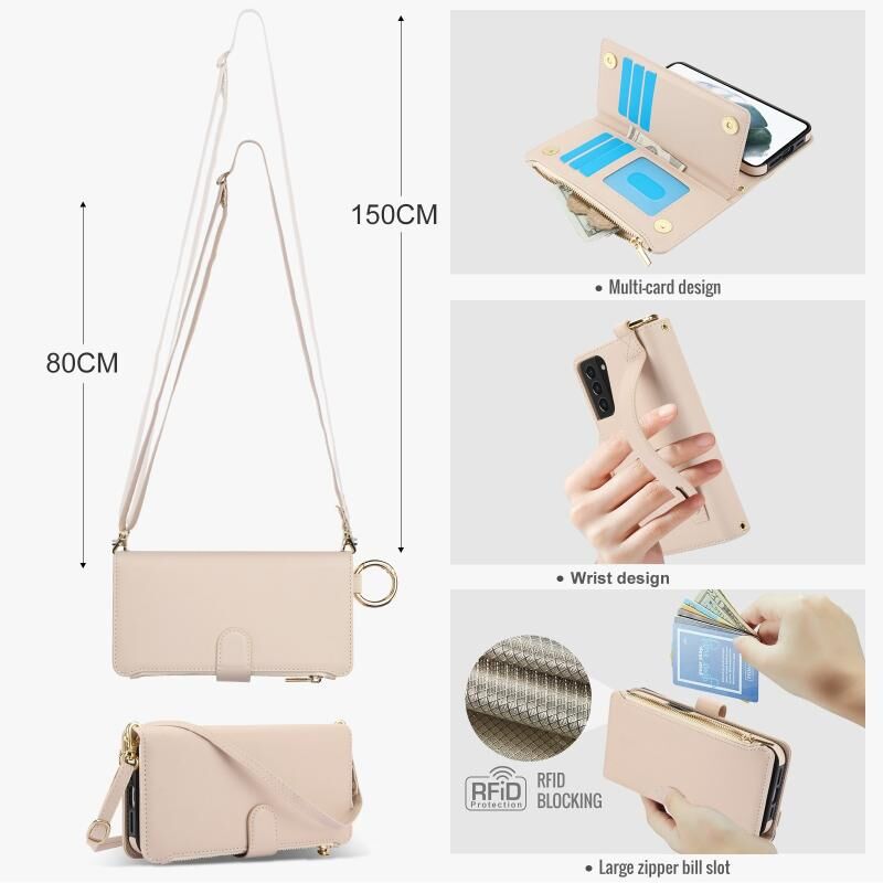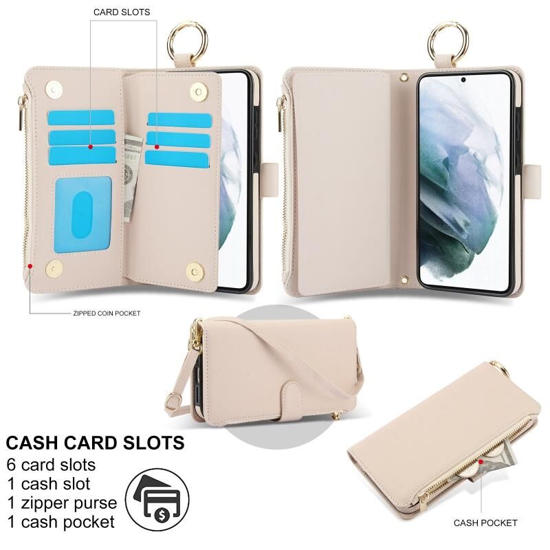 Για Samsung Galaxy S21 5G Δαχτυλίδι Crossbody Πολυλειτουργική θήκη τηλεφώνου Πορτοφόλι Δερμάτινη(Λευκό)