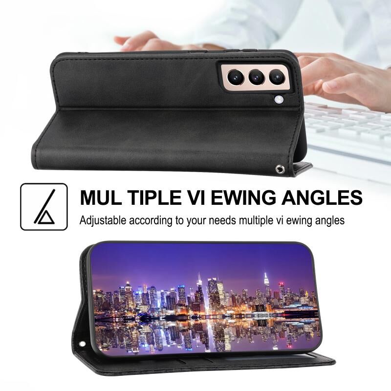 Για Samsung Galaxy S21 5G Cubic Grid Calf υφή μαγνητικό κλείσιμο δερμάτινη θήκη τηλεφώνου (μαύρο)
