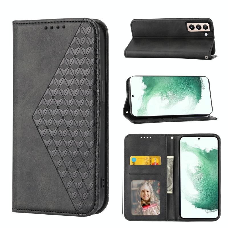 Για Samsung Galaxy S21+ 5G Cubic Grid Calf Texture μαγνητικό κλείσιμο δερμάτινη θήκη τηλεφώνου (μαύρο)